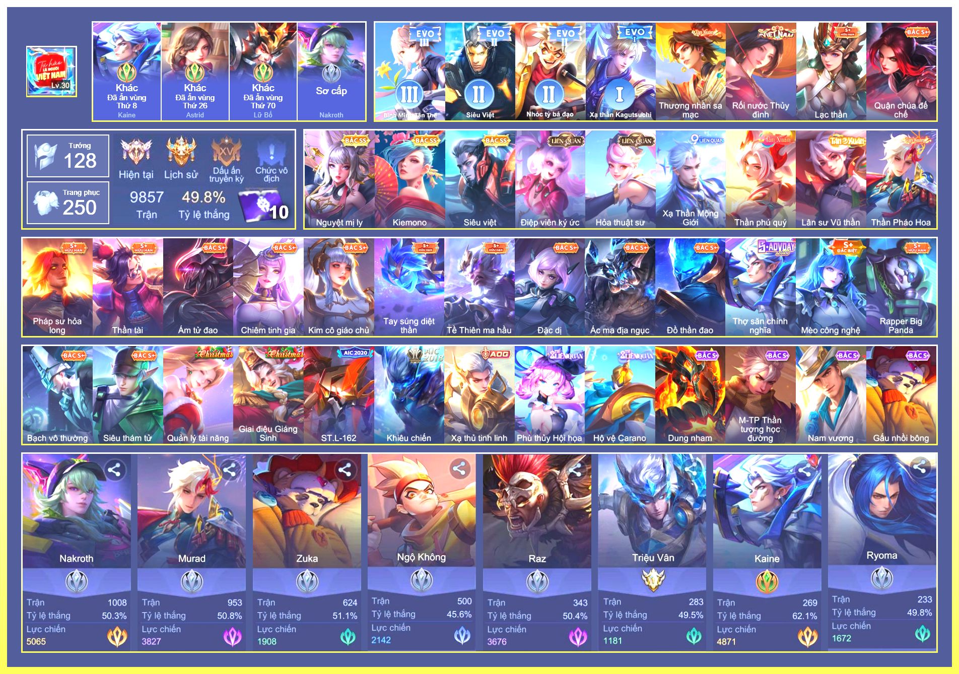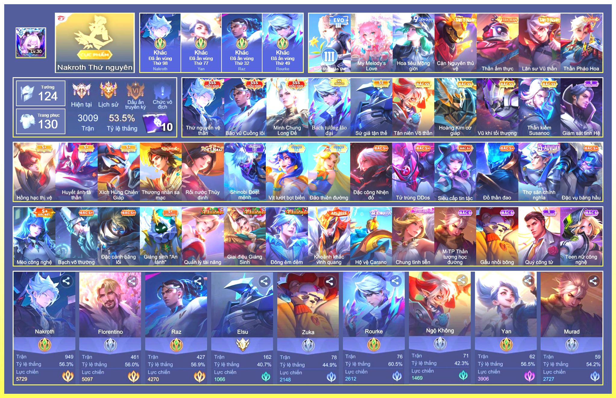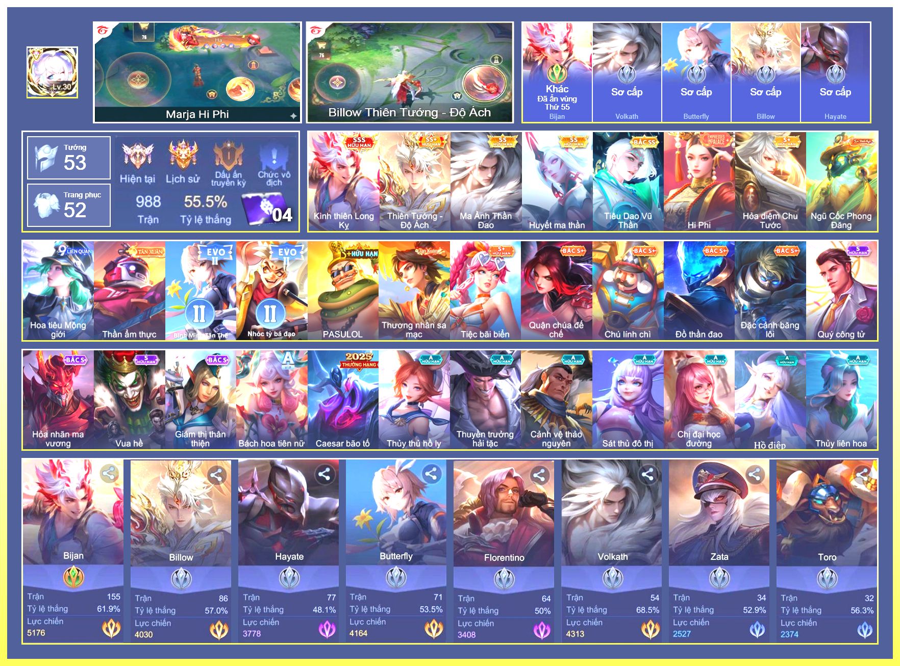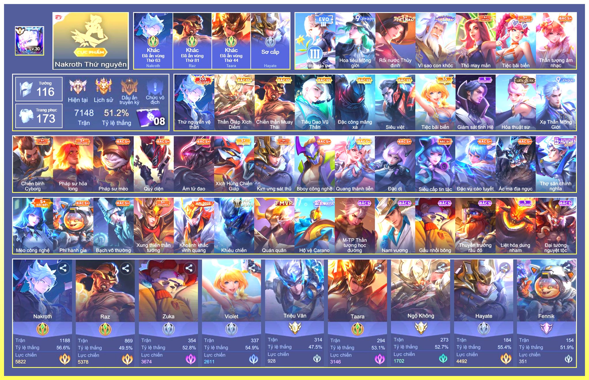 Nổi bật: Rất Nhiều Skin Đẹp Vip.Ngọc 90.Dư 103K Vàng.Dư 2 Đá Quý.Arum Vũ Khúc Long Hổ.Laville Xạ Thần Tinh Vệ.Yorn Thế Tử Nguyệt Tộc.Nak Siêu Việt.Butterfly Bình Minh Tận Thế.Nak Quán Quân.Elsu Xạ Thủ Linh Tinh.Hayate Mãnh Hổ Kim Cang.Wisp Tiểu Ronin.Omega Samurai Cơ Hoá.Enzo Shinobi Đoạt Mệnh....