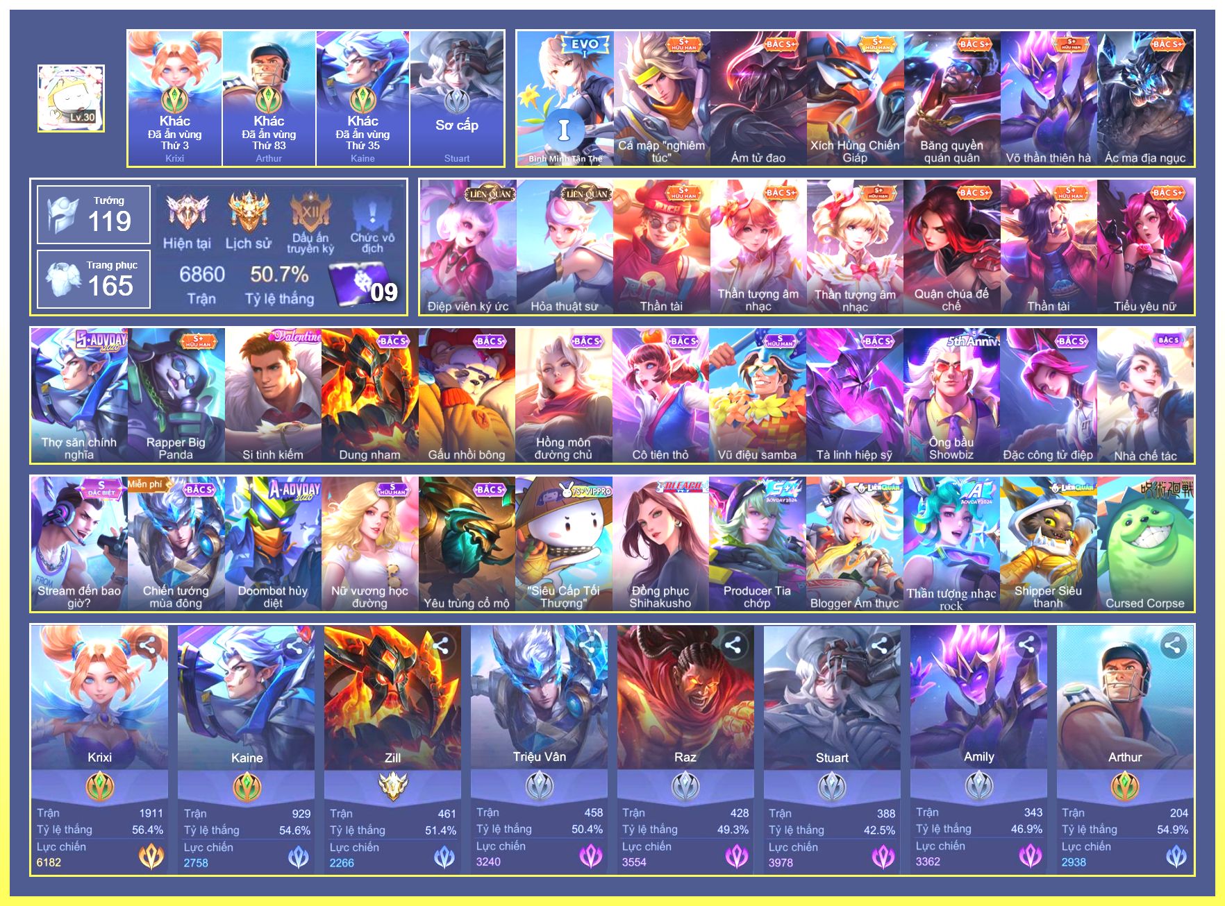 Nổi bật: Rất Nhiều Skin Đẹp Vip.Ngọc 90.Ryoma Đặc Nhiệm Giáng Sinh.Murad Huyết Hỏa Cuồng Đồ.Zuka Gấu Nhồi Bông.Thorne Giả Kim Thuật Sư...