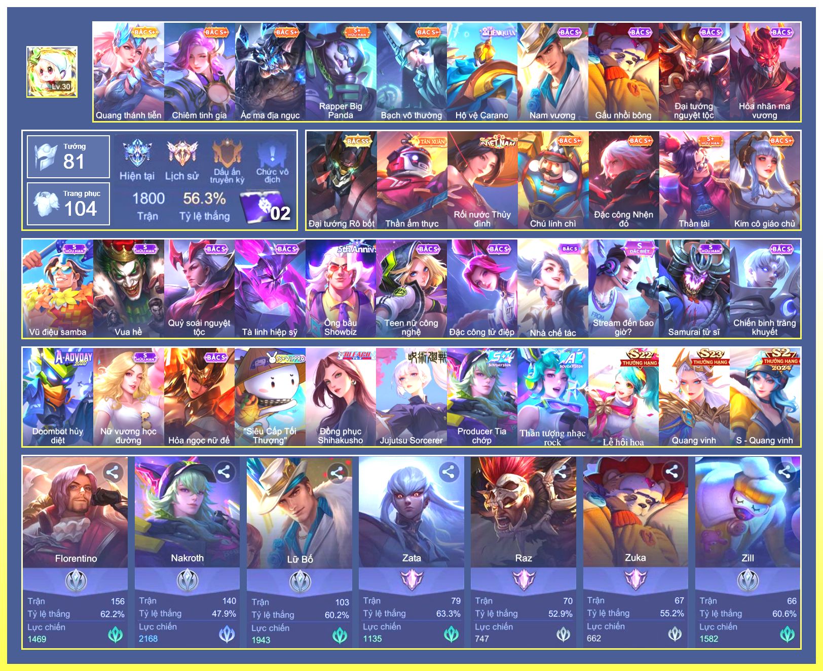 Rất Nhiều Skin Đẹp Vip.Ngọc 90.Dư 5...