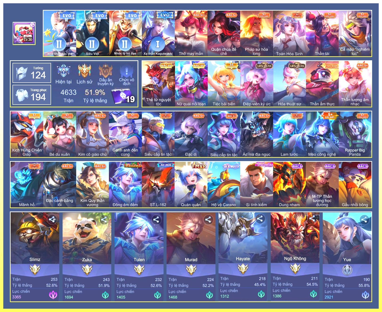 Rất Nhiều Skin Đẹp Vip.Ngọc 90.Dư 3...