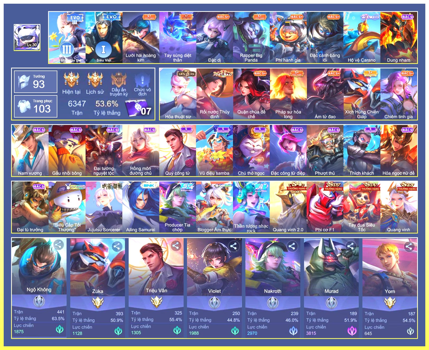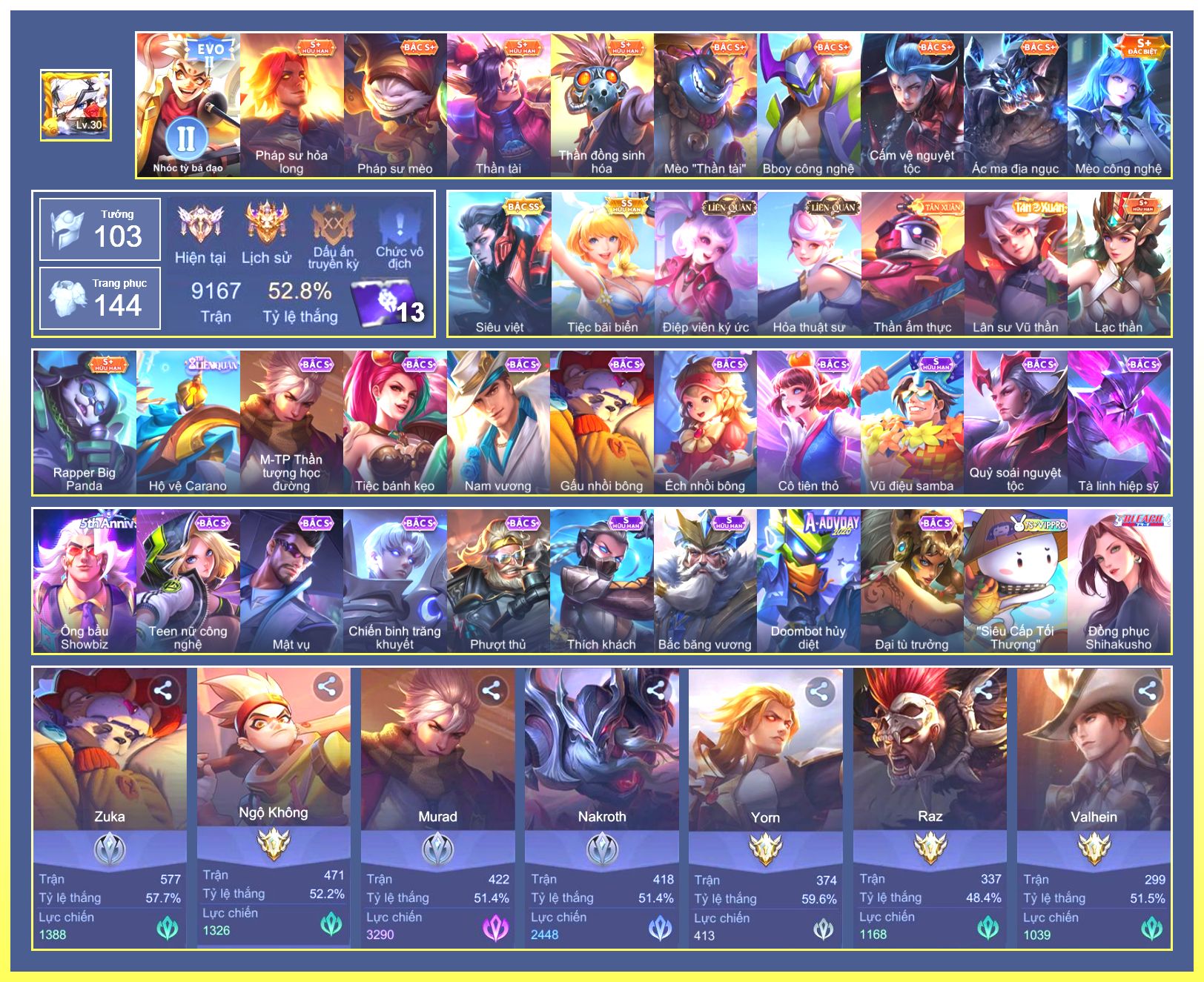Rất Nhiều Skin Đẹp Vip.Ngọc 90.Dư 6...
