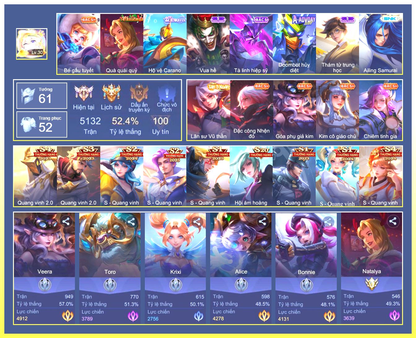 Rất Nhiều Skin Đẹp Vip.Ngọc 90.Dư 3...