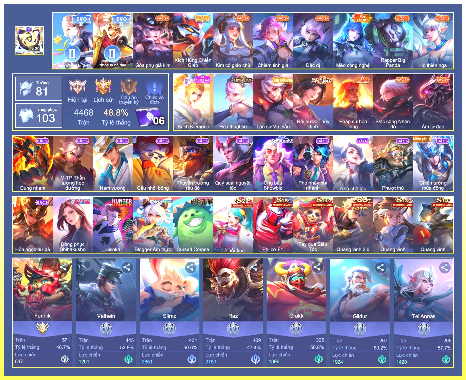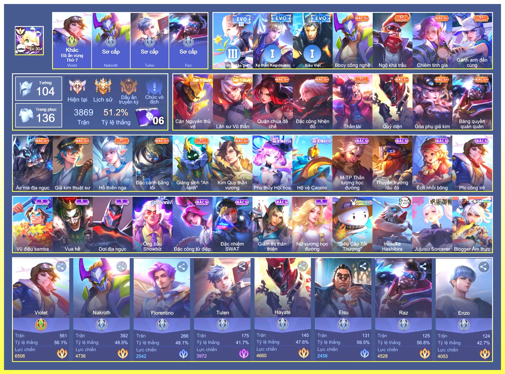 Rất Nhiều Skin Đẹp Vip.Ngọc 90.Dư 8...