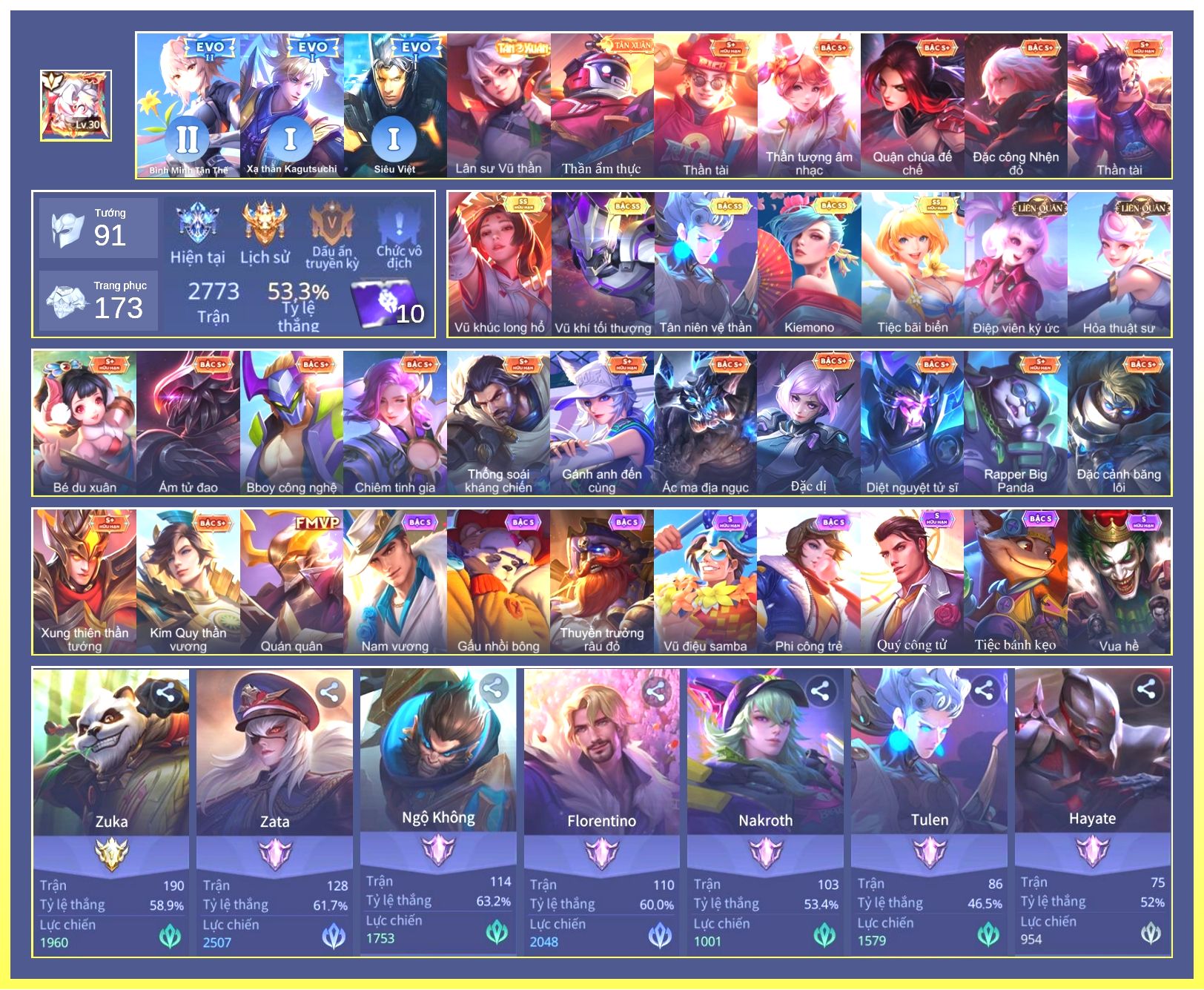 Rất Nhiều Skin Đẹp Vip.Ngọc 90.Dư 3...