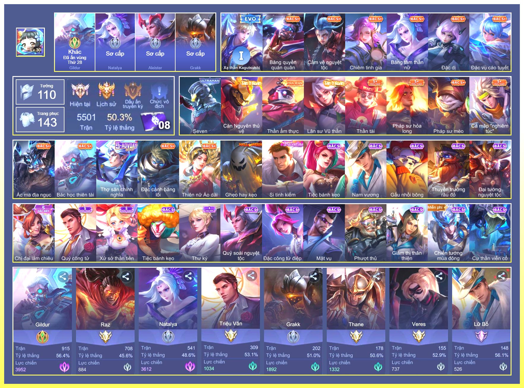 Rất Nhiều Skin Đẹp Vip.Ngọc 90.Dư 6...
