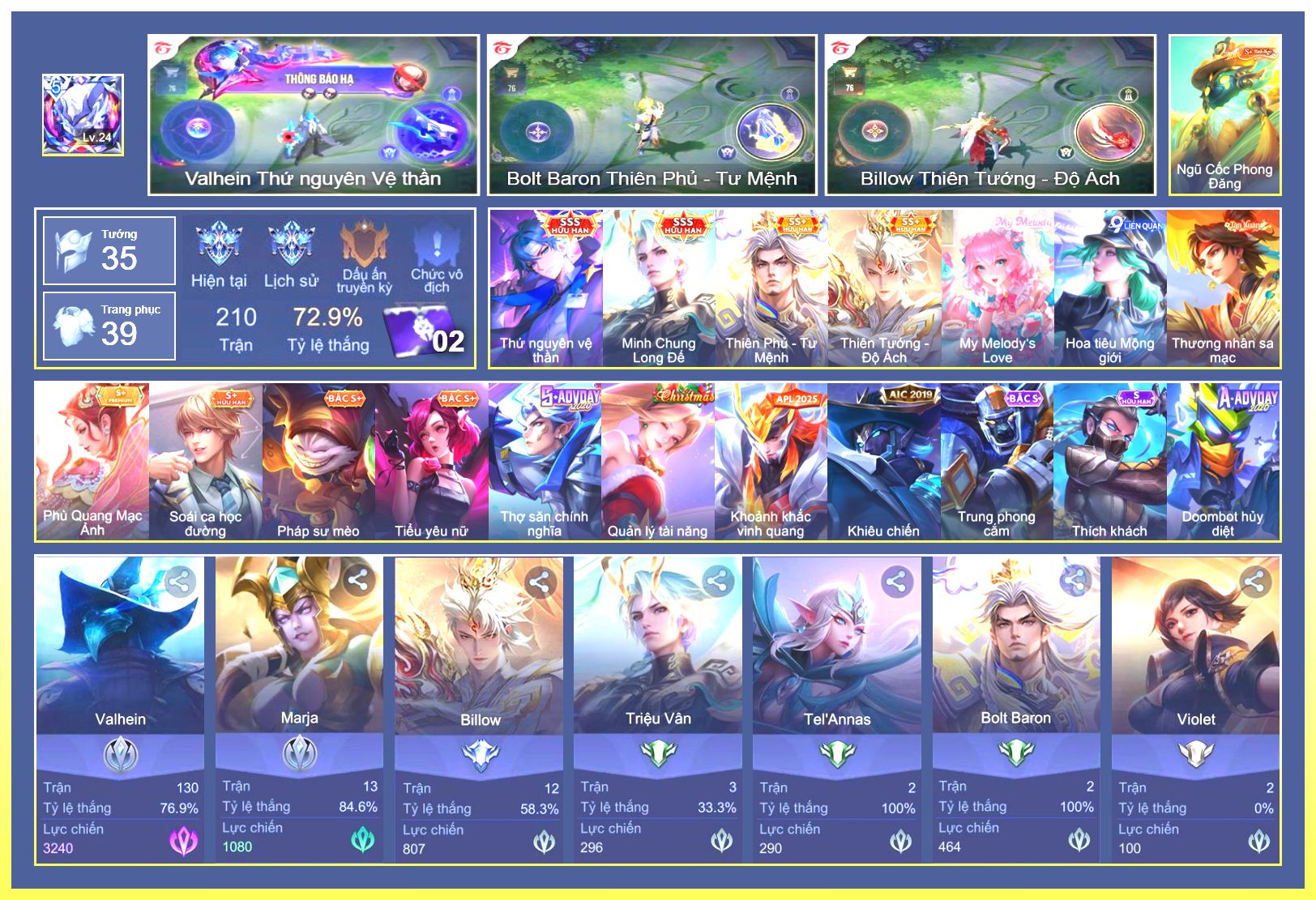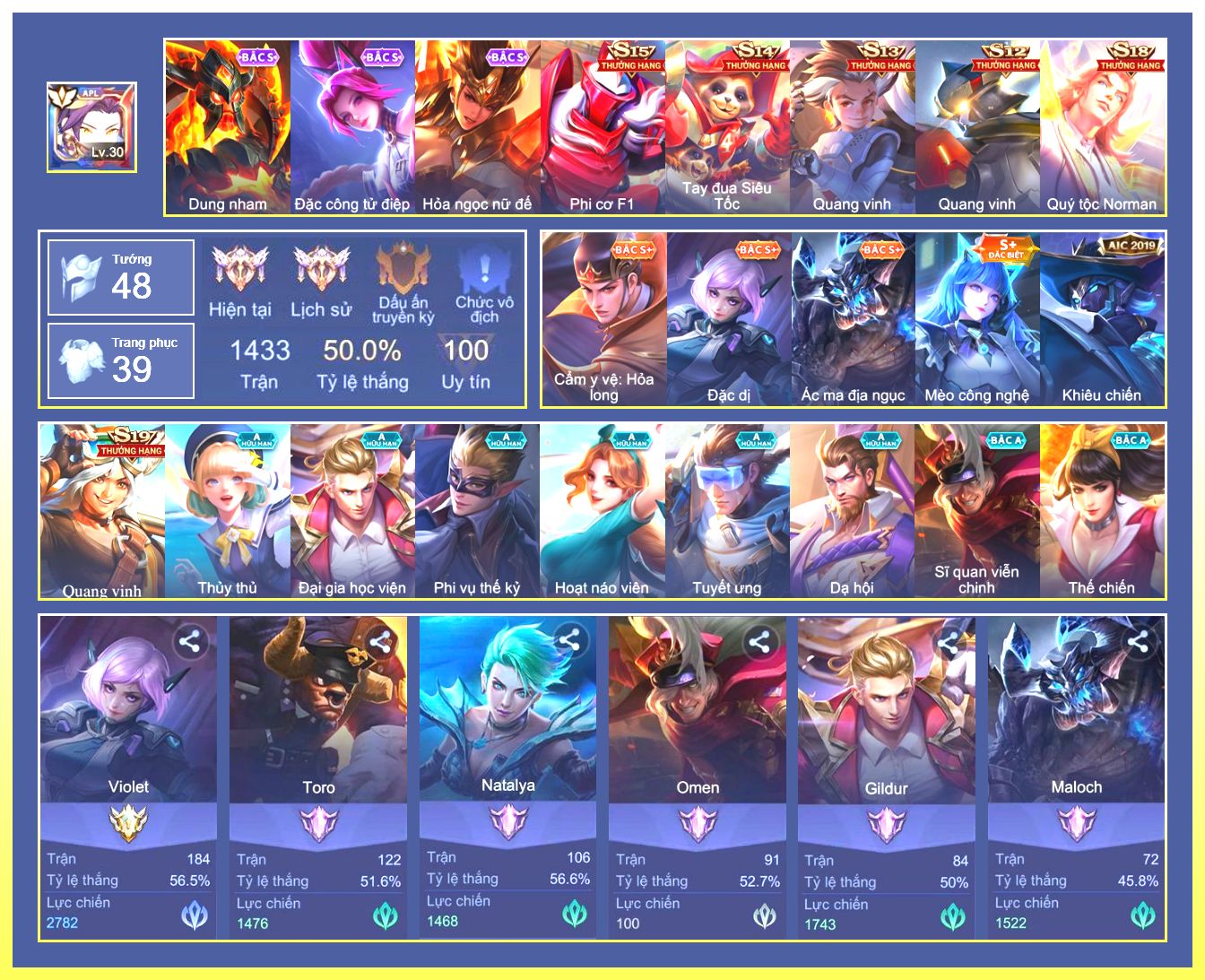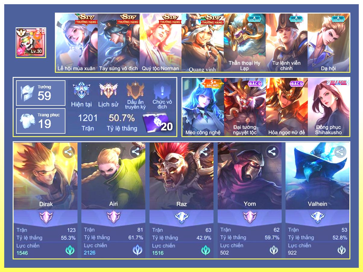 Rất Nhiều Skin Đẹp Vip.Ngọc 90.Dư 9...
