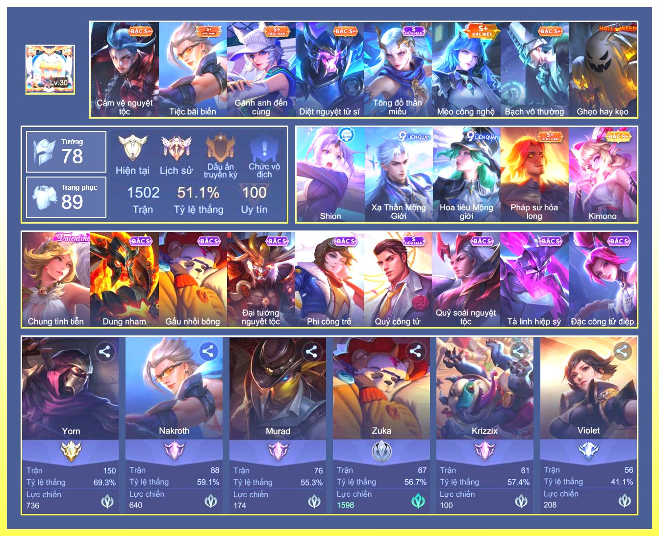 Rất Nhiều Skin Đẹp Vip.Ngọc 90.Dư 5...