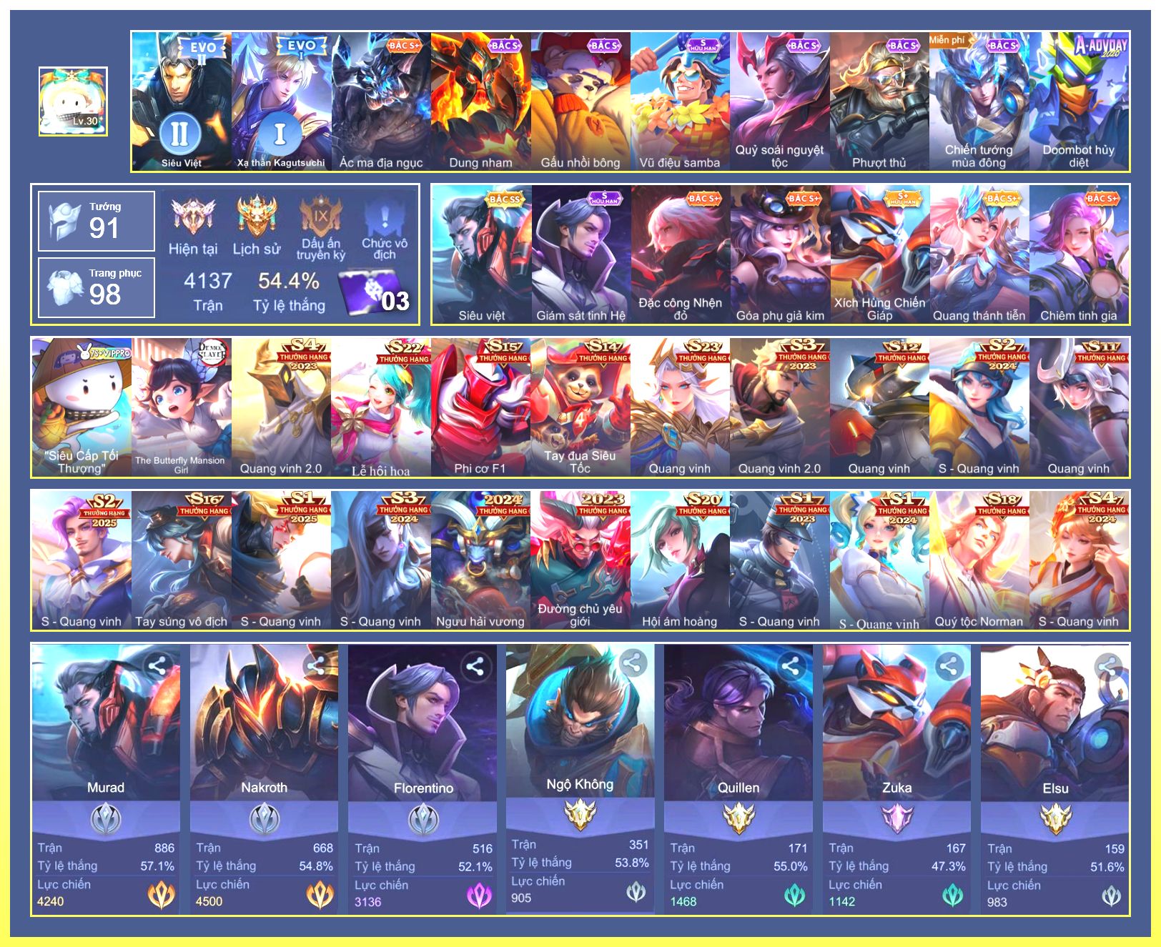 Rất Nhiều Skin Đẹp Vip.Ngọc 90.Dư 4...