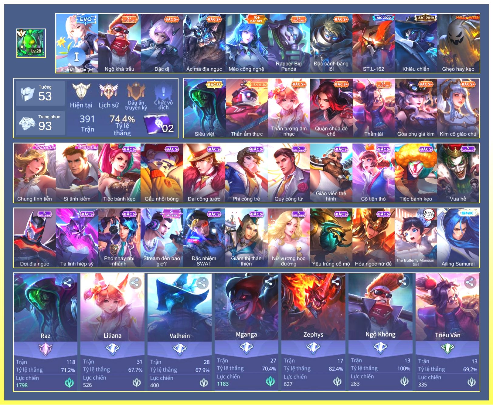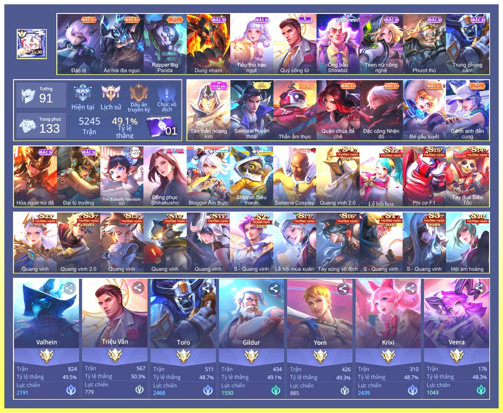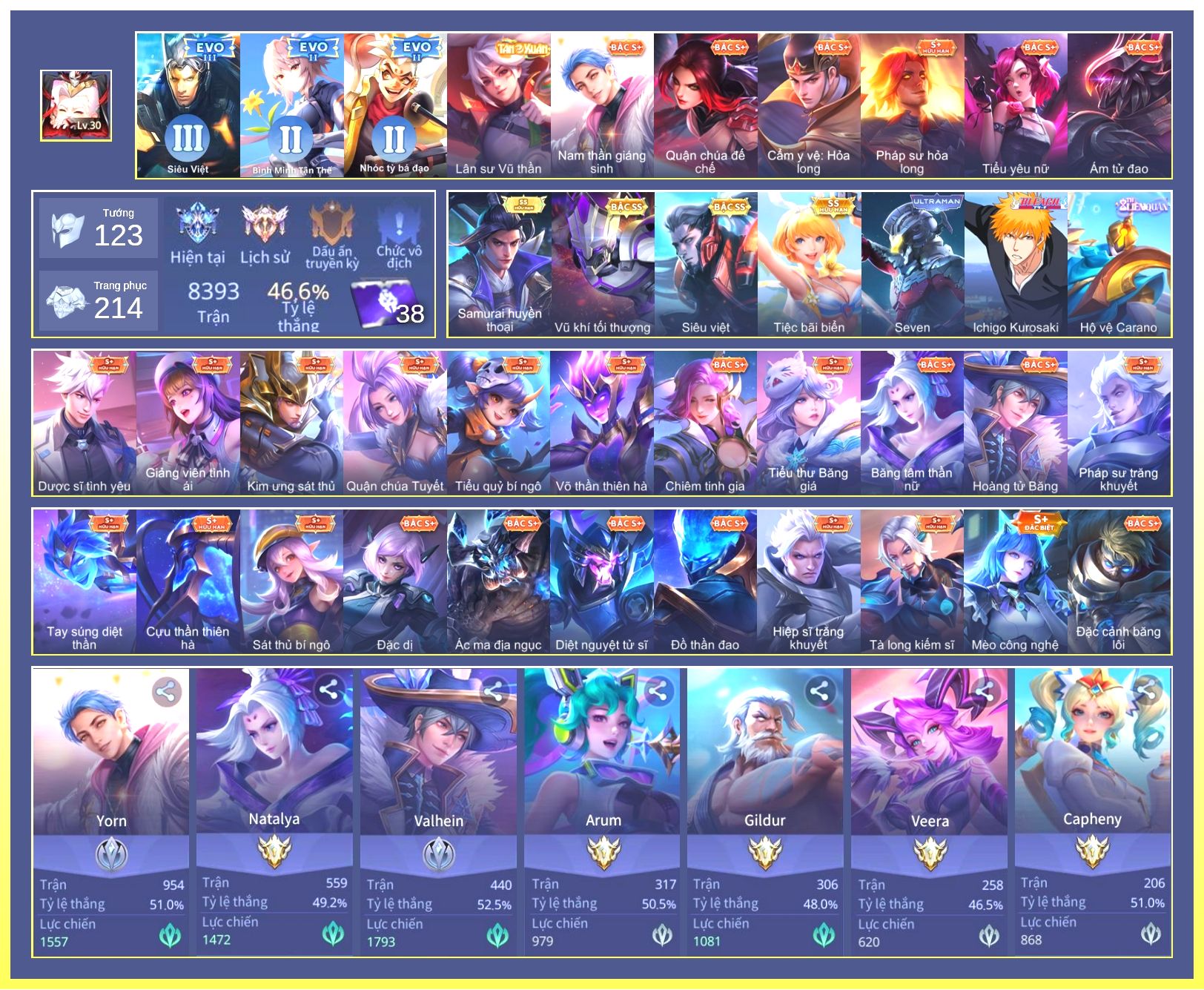 Rất Nhiều Skin Đẹp Vip.Ngọc 90.Dư 5...