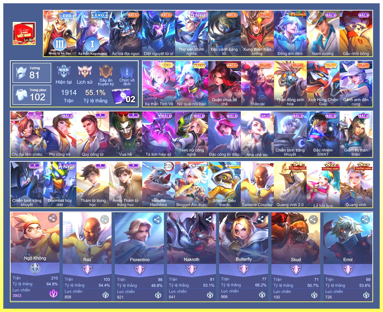 Rất Nhiều Skin Đẹp Vip.Ngọc 90.Dư 6...