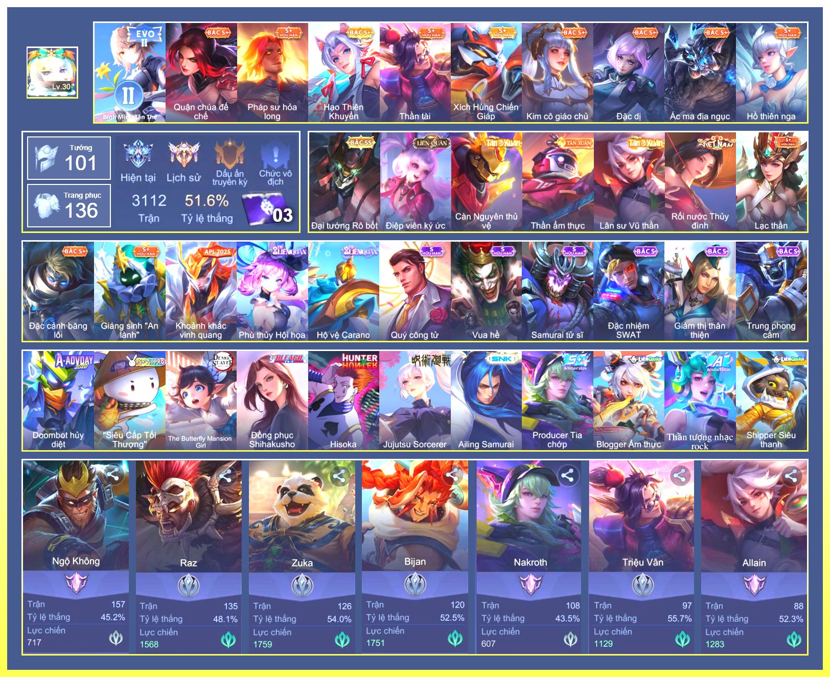 Rất Nhiều Skin Đẹp Vip.Ngọc 90.Dư 5...