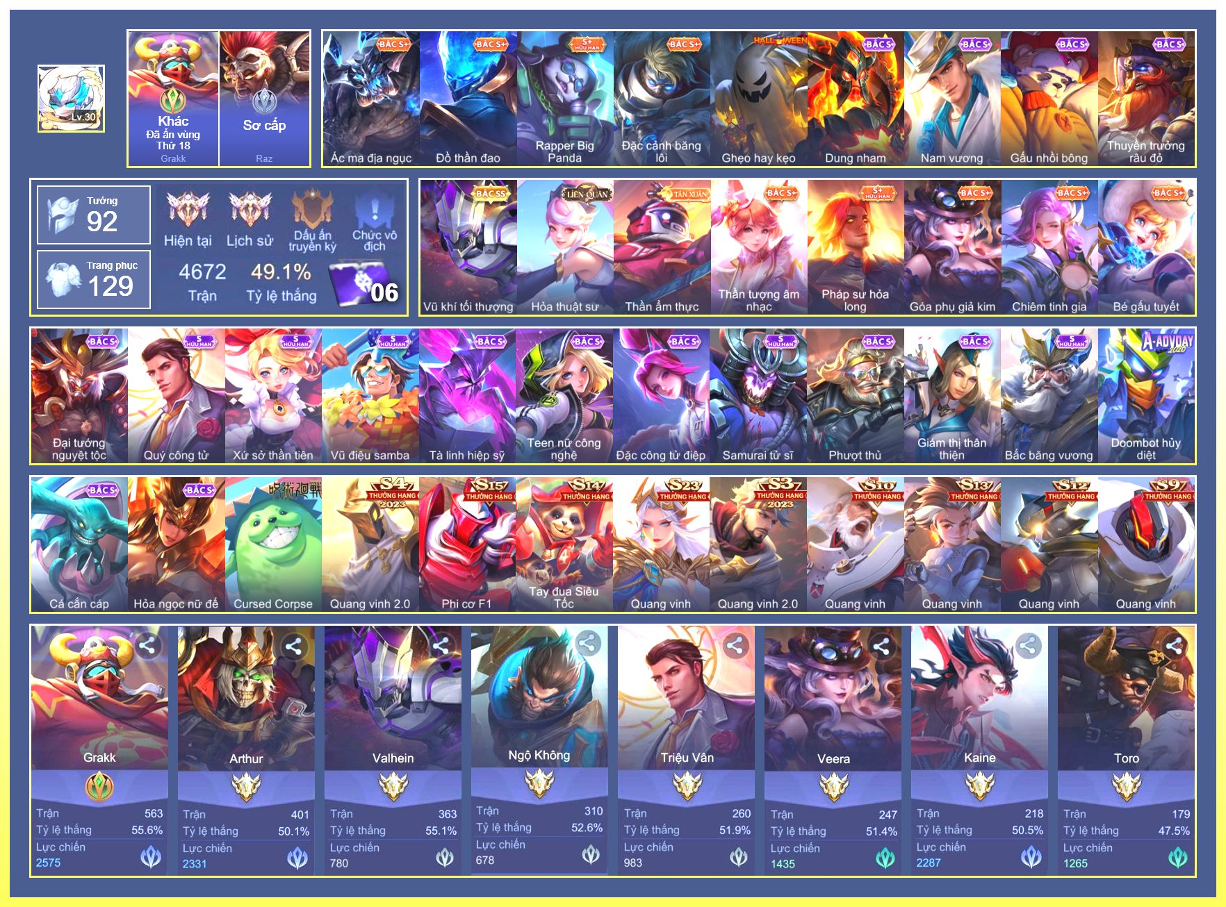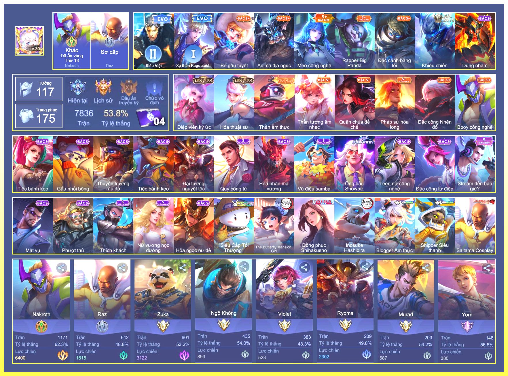 Rất Nhiều Skin Đẹp Vip.Ngọc 90.Dư 6...