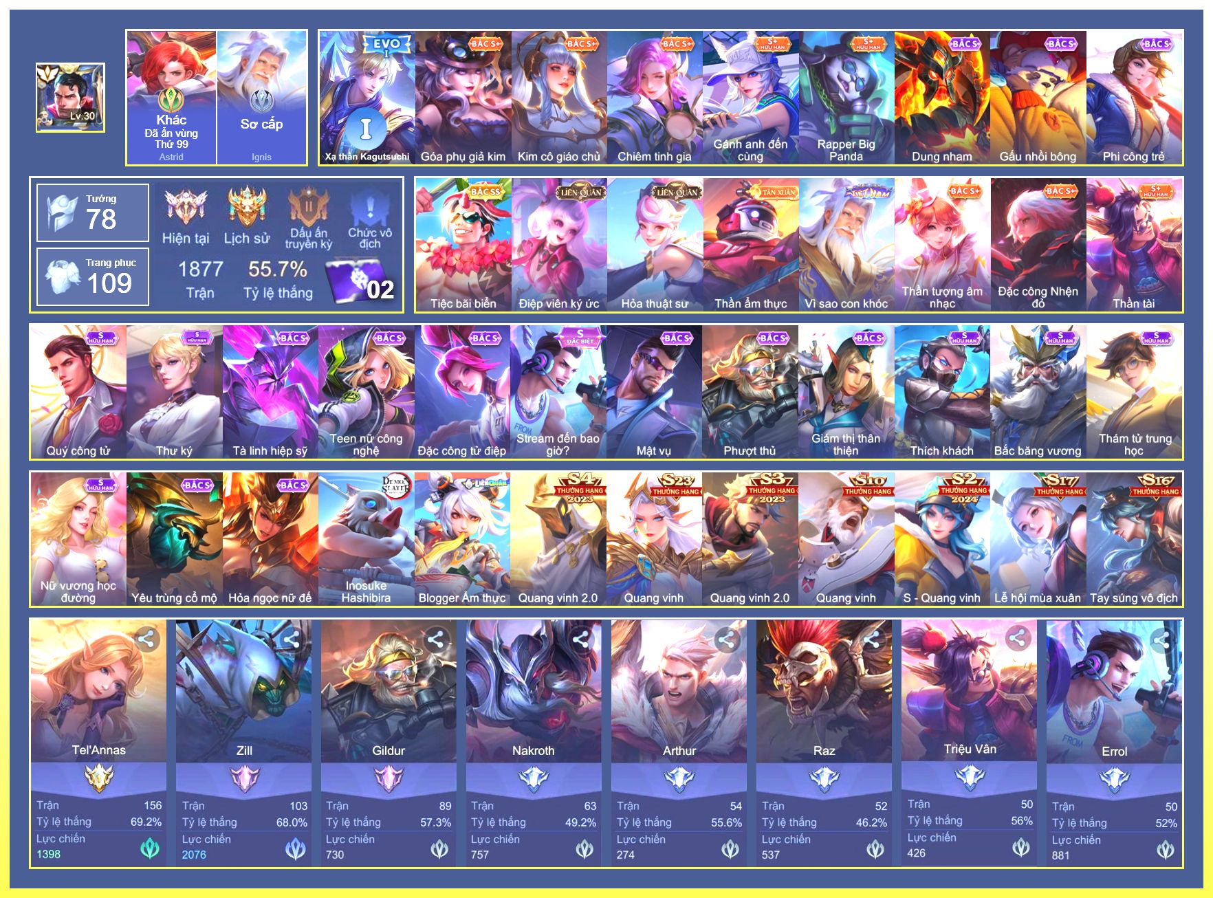 Rất Nhiều Skin Đẹp Vip.Ngọc 90.Dư 7...