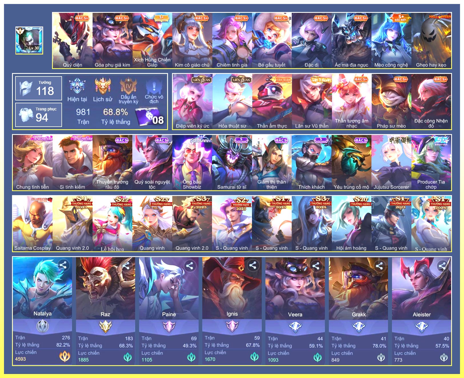 Rất Nhiều Skin Đẹp Vip.Ngọc 90.Dư 7...
