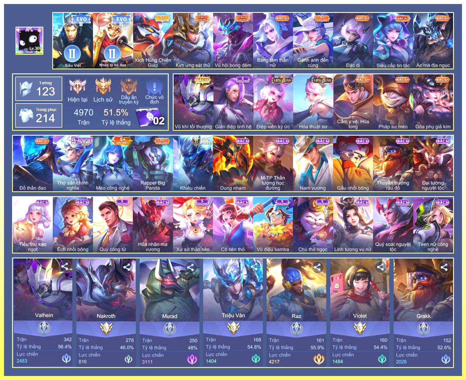 Rất Nhiều Skin Đẹp Vip.Ngọc 90.Lavi...