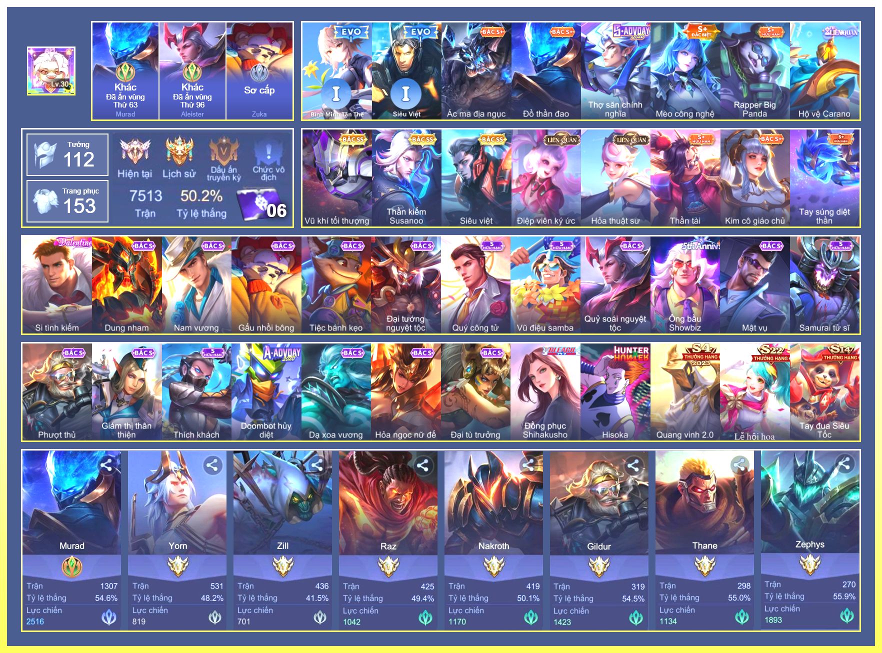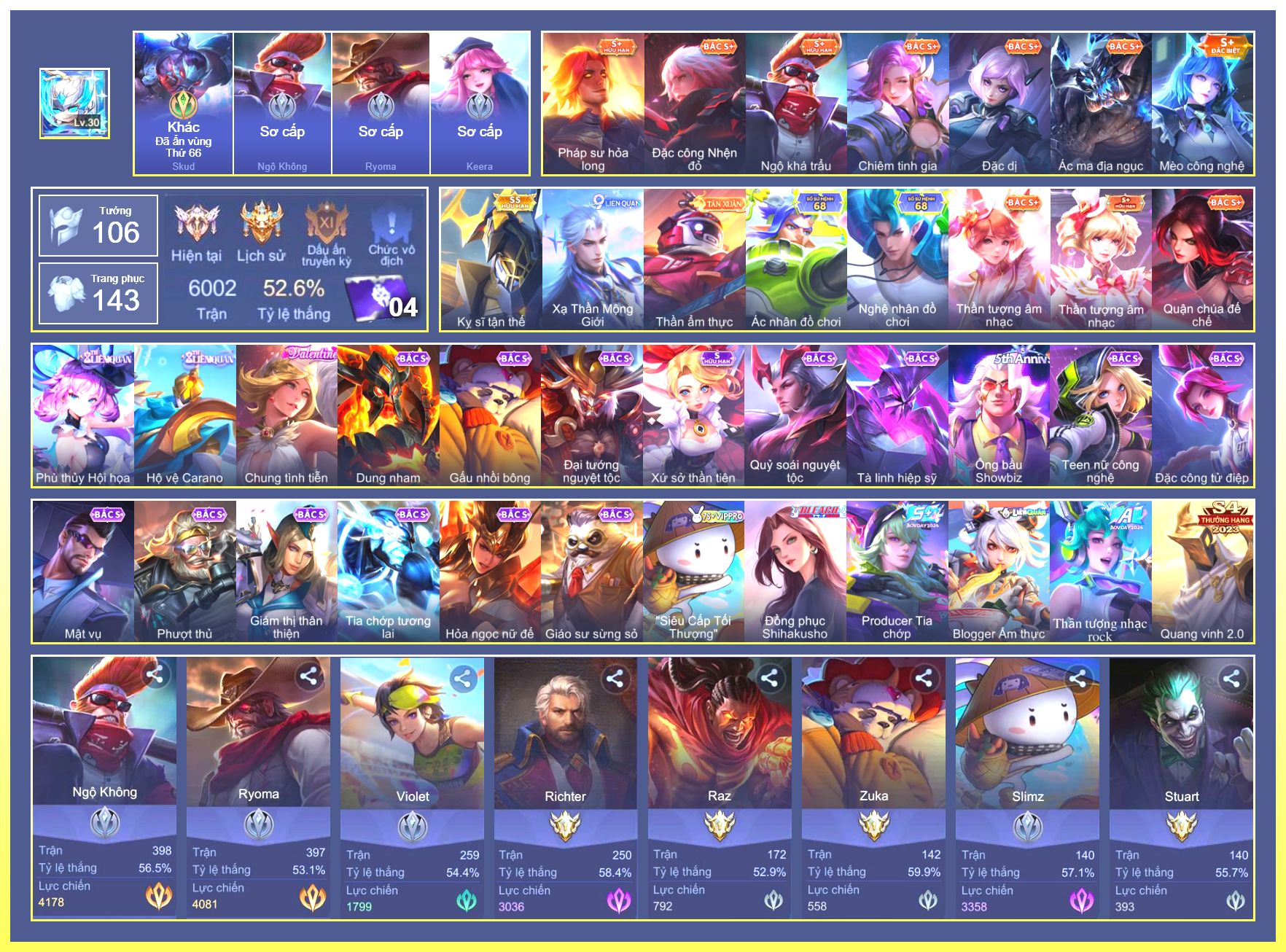 Rất Nhiều Skin Đẹp Vip.Ngọc 90.Dư 6...