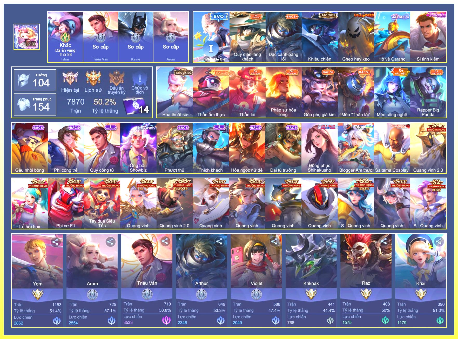 Rất Nhiều Skin Đẹp Vip.Ngọc 90.Triệ...