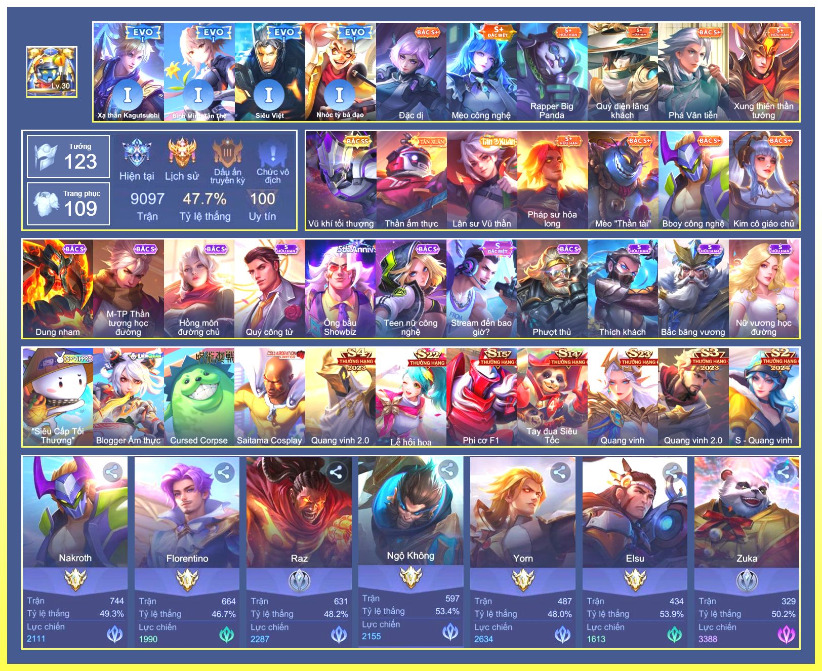 Rất Nhiều Skin Đẹp Vip.Ngọc 90.Dư 3...