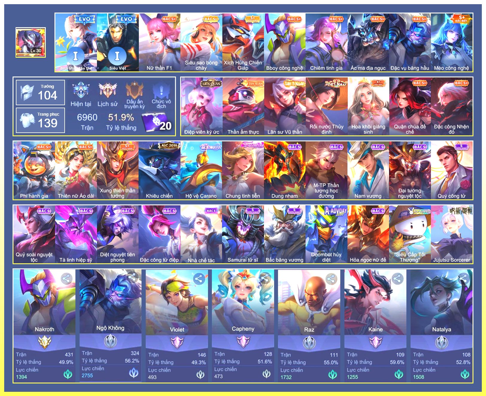Rất Nhiều Skin Đẹp Vip.Ngọc 90.Dư 4...