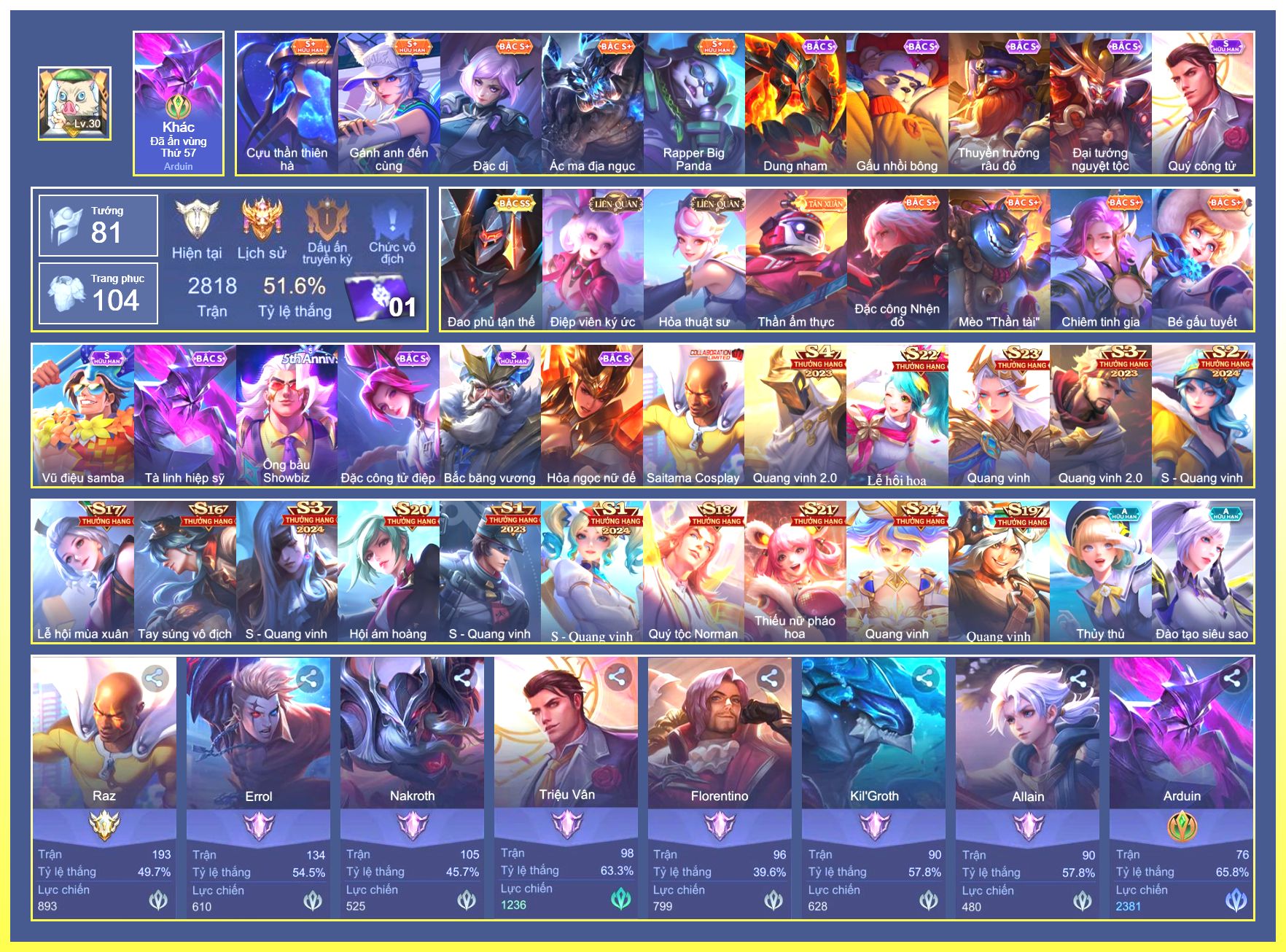 Rất Nhiều Skin Đẹp Vip.Ngọc 90.Dư 4...