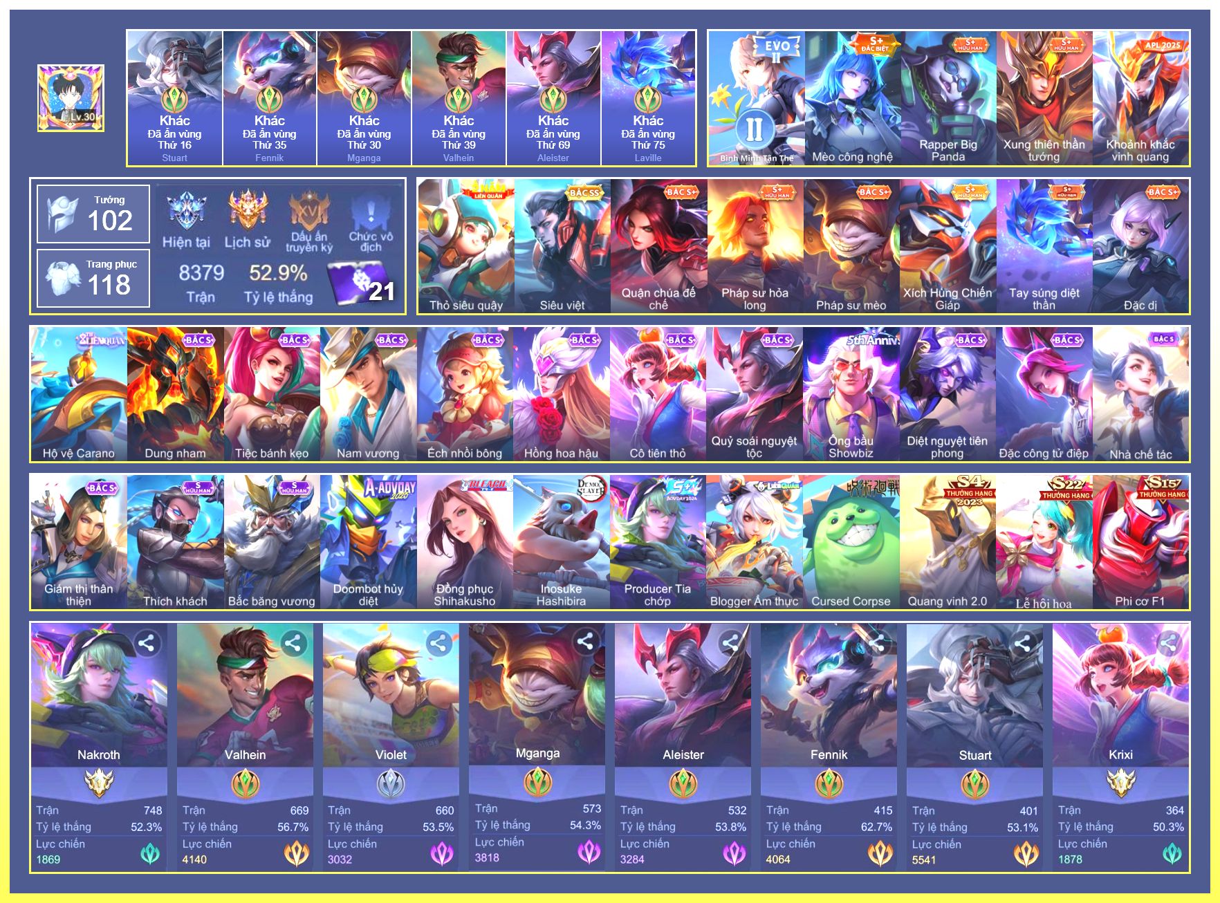 Rất Nhiều Skin Đẹp Vip.Ngọc 90.Dư 7...