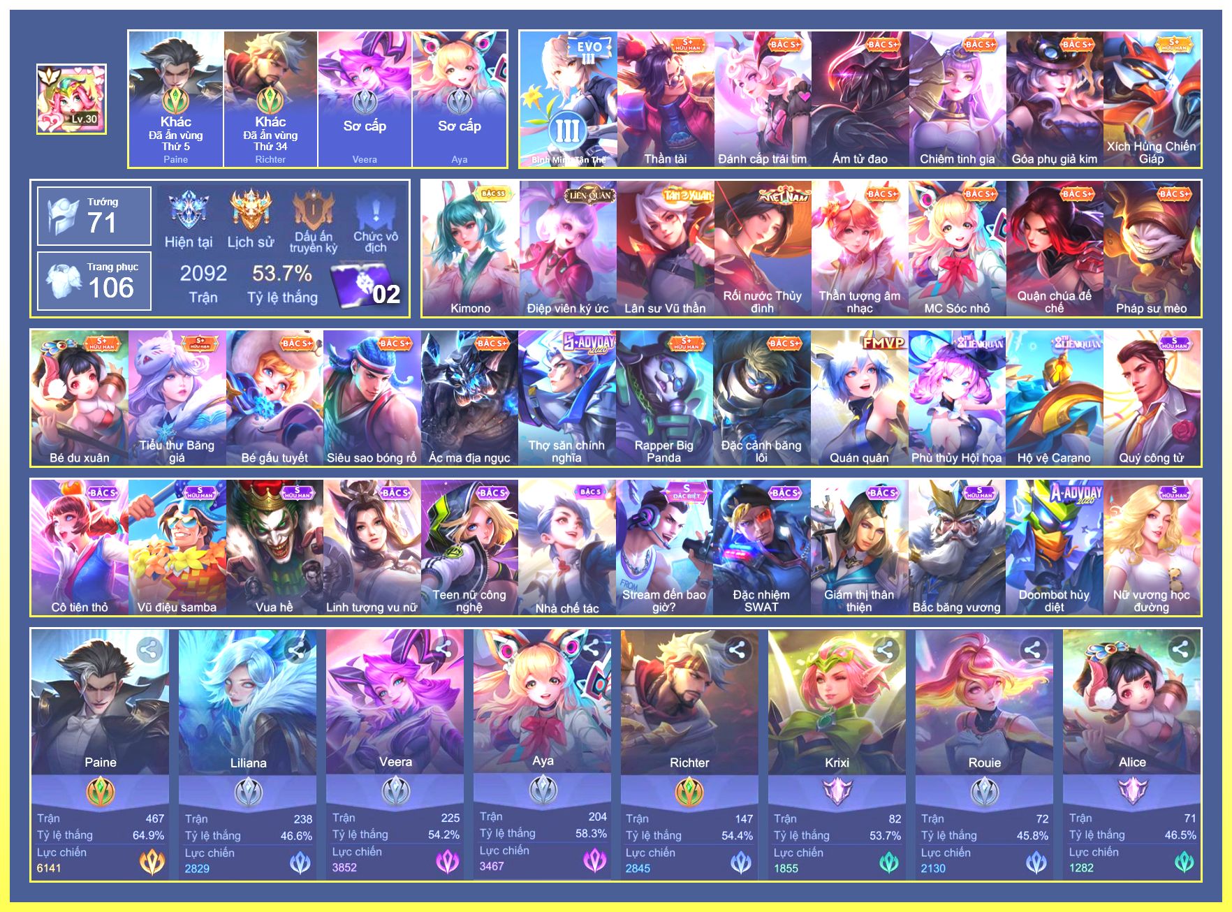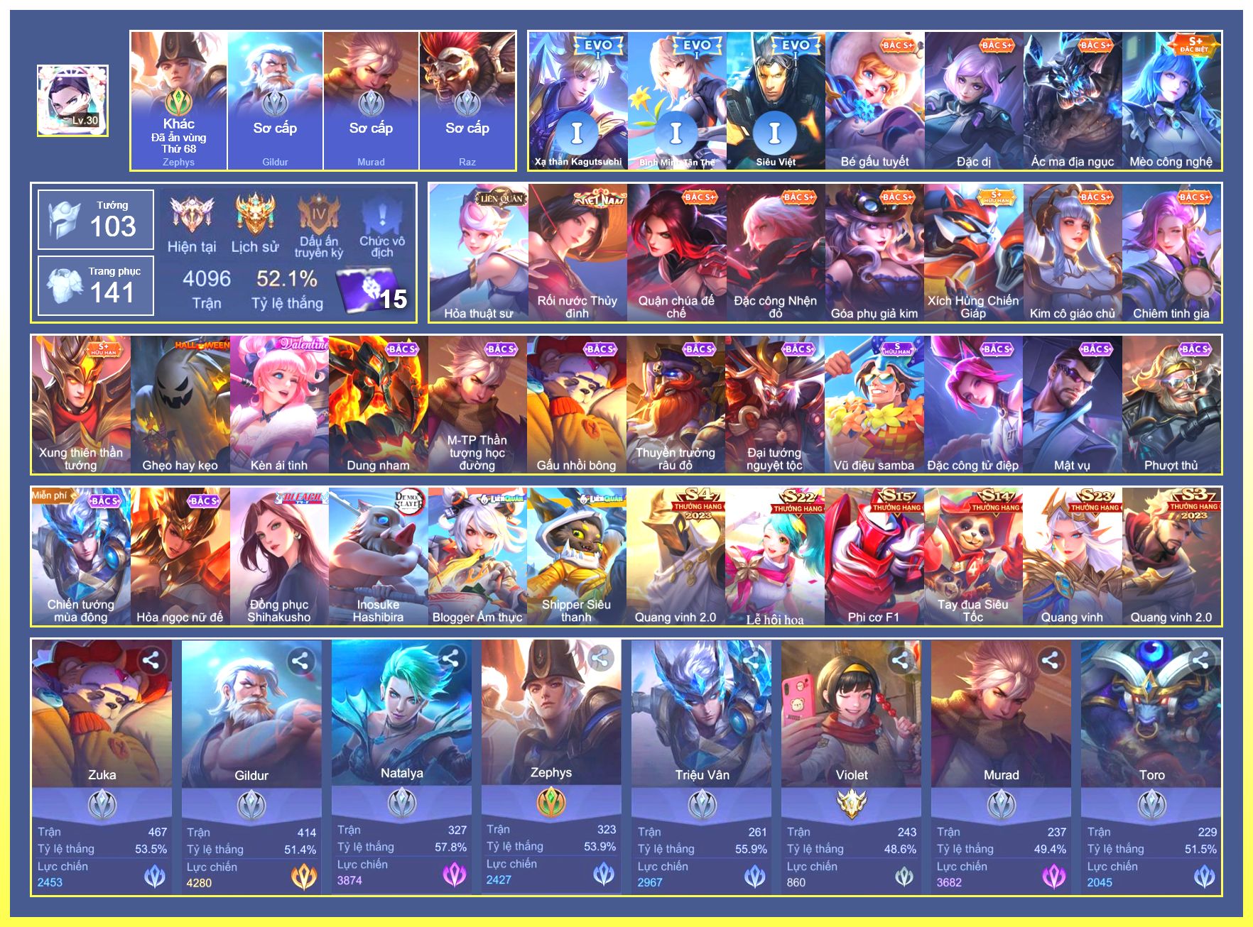 Rất Nhiều Skin Đẹp Vip.Ngọc 90.Dư 6...