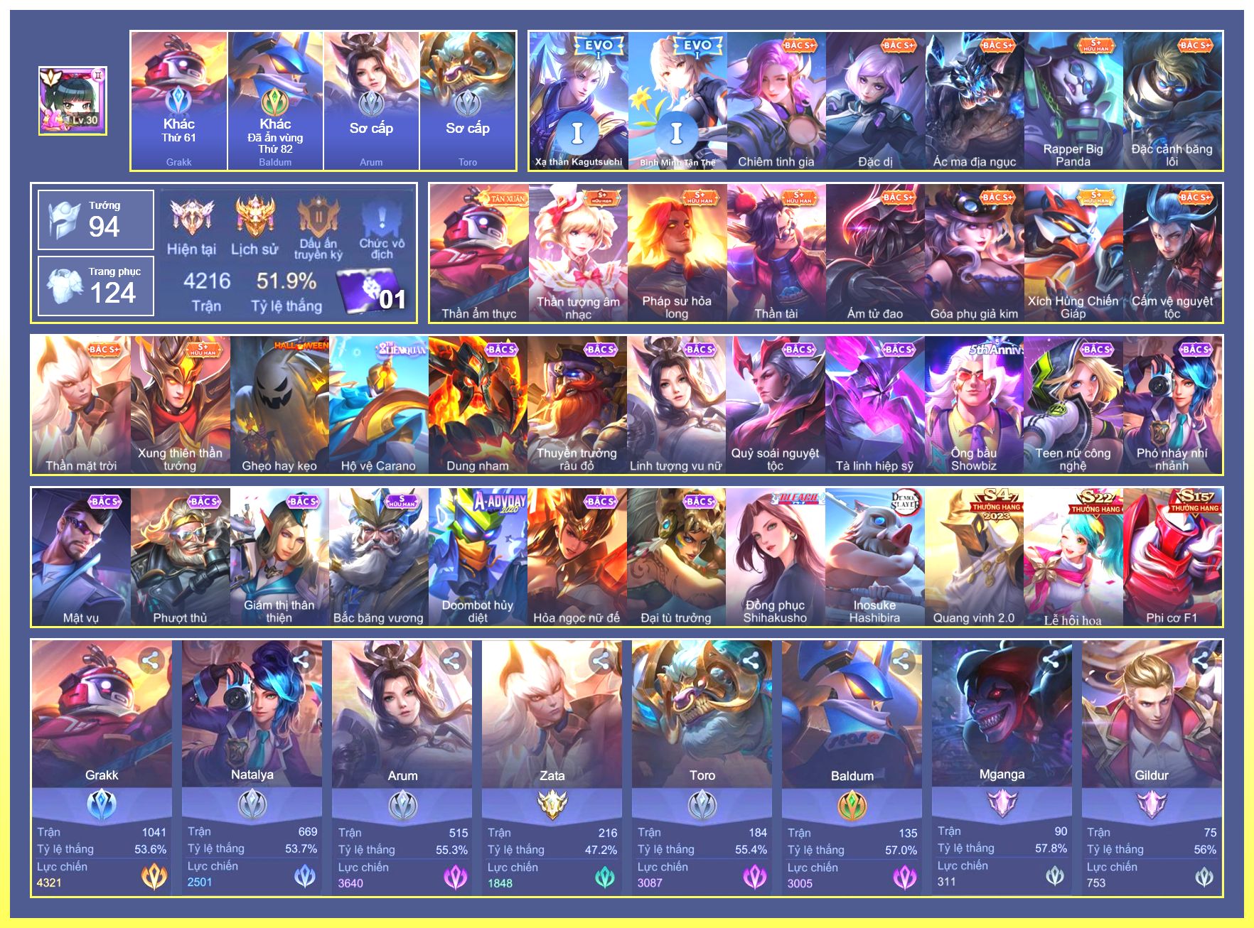 Rất Nhiều Skin Đẹp Vip.Ngọc 90.Dư 4...