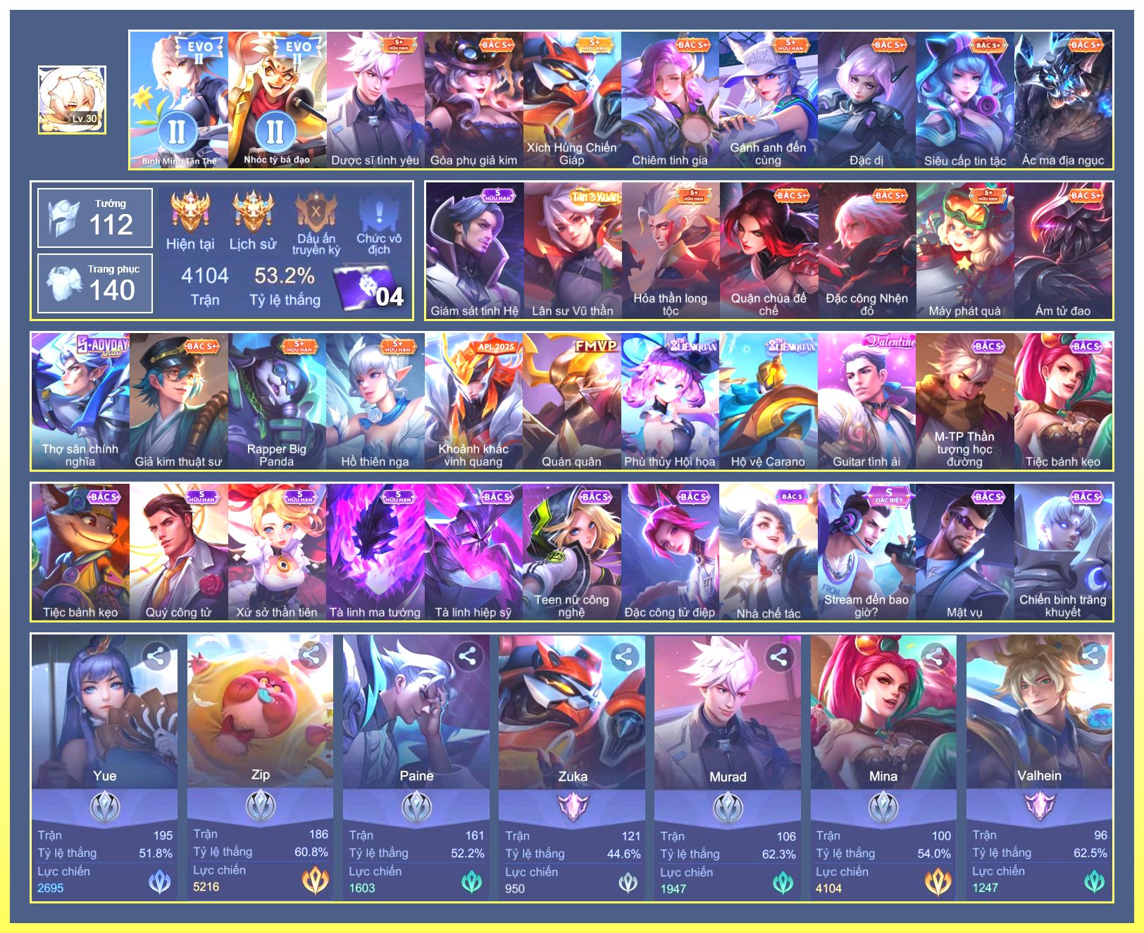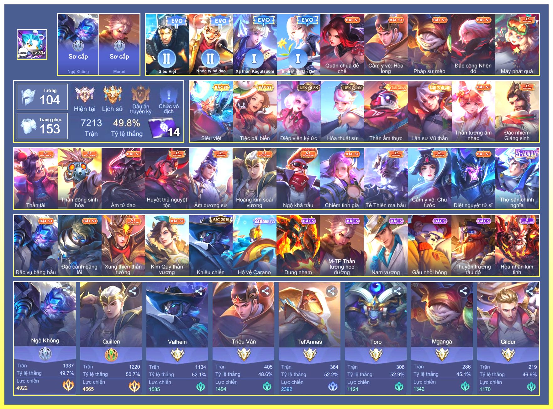 Rất Nhiều Skin Đẹp Vip.Ngọc 90.Malo...