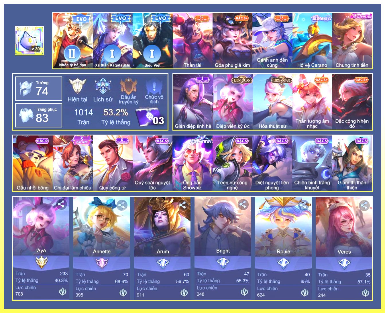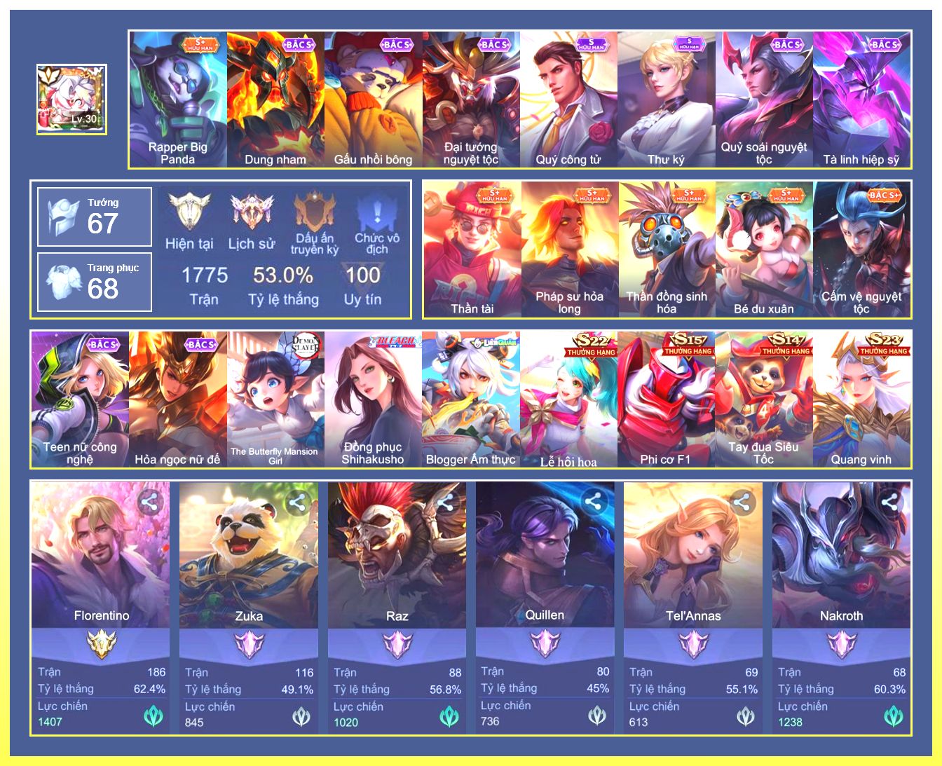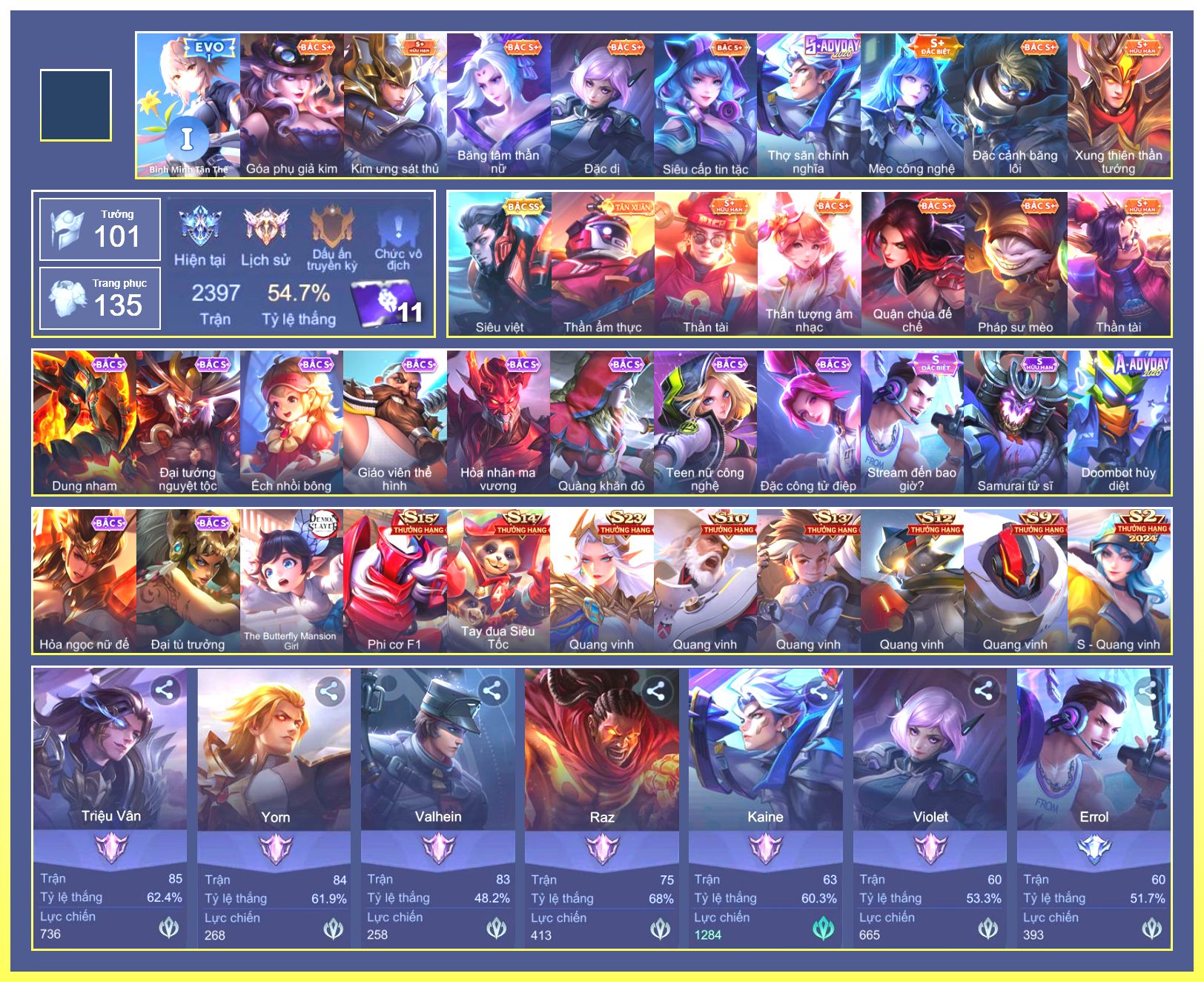Rất Nhiều Skin Đẹp Vip.Ngọc 90.Dư 3...