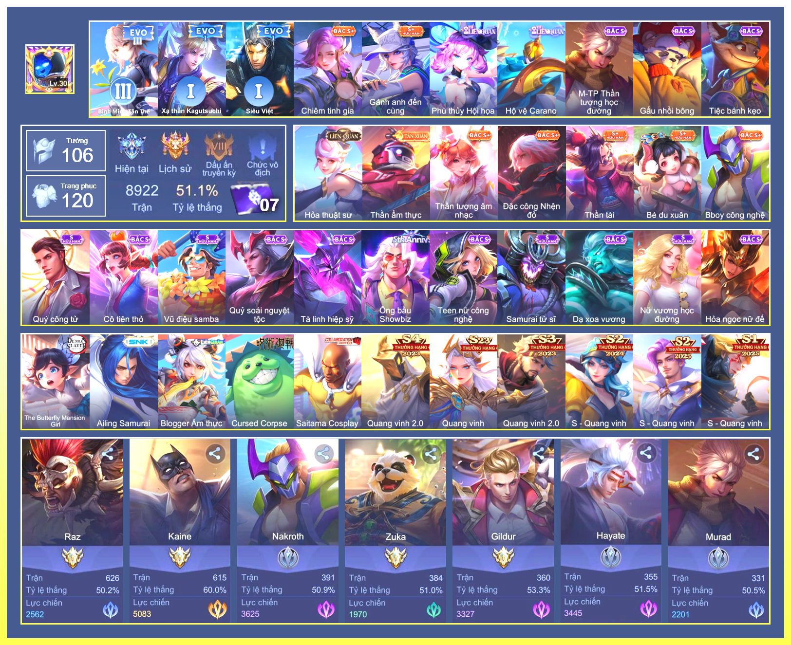 Rất Nhiều Skin Đẹp Vip.Ngọc 90.Dư 4...