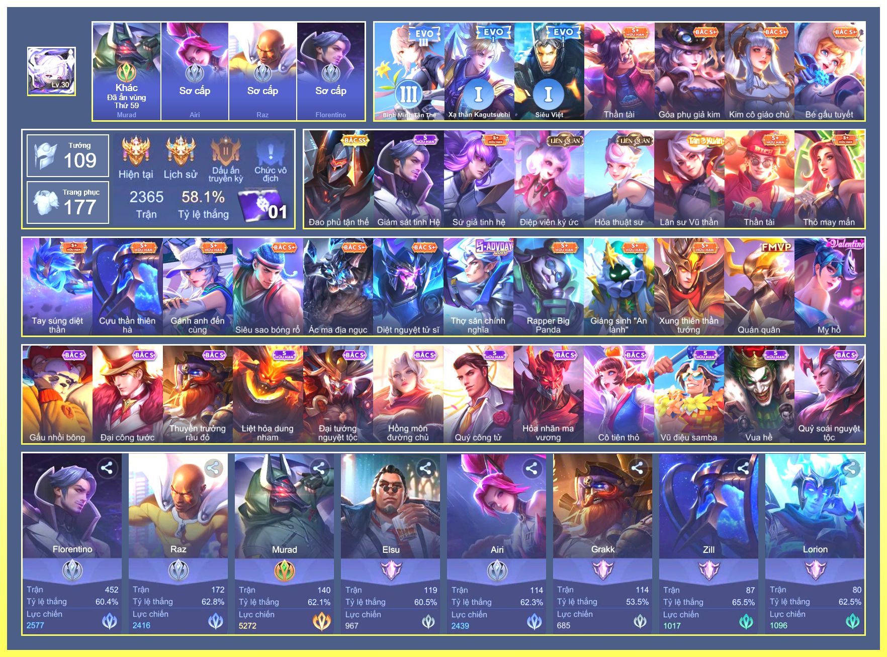 Rất Nhiều Skin Đẹp Vip.Ngọc 90.Omen...