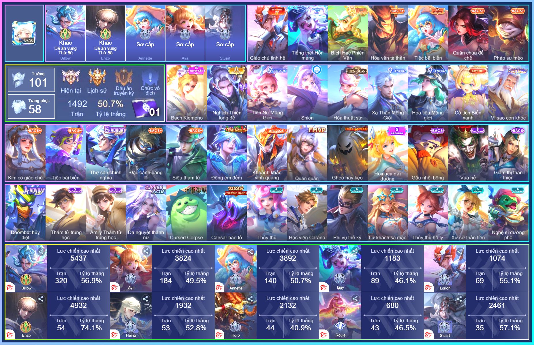 Rất Nhiều Skin Đẹp Vip.Ngọc 90.Dư 5...