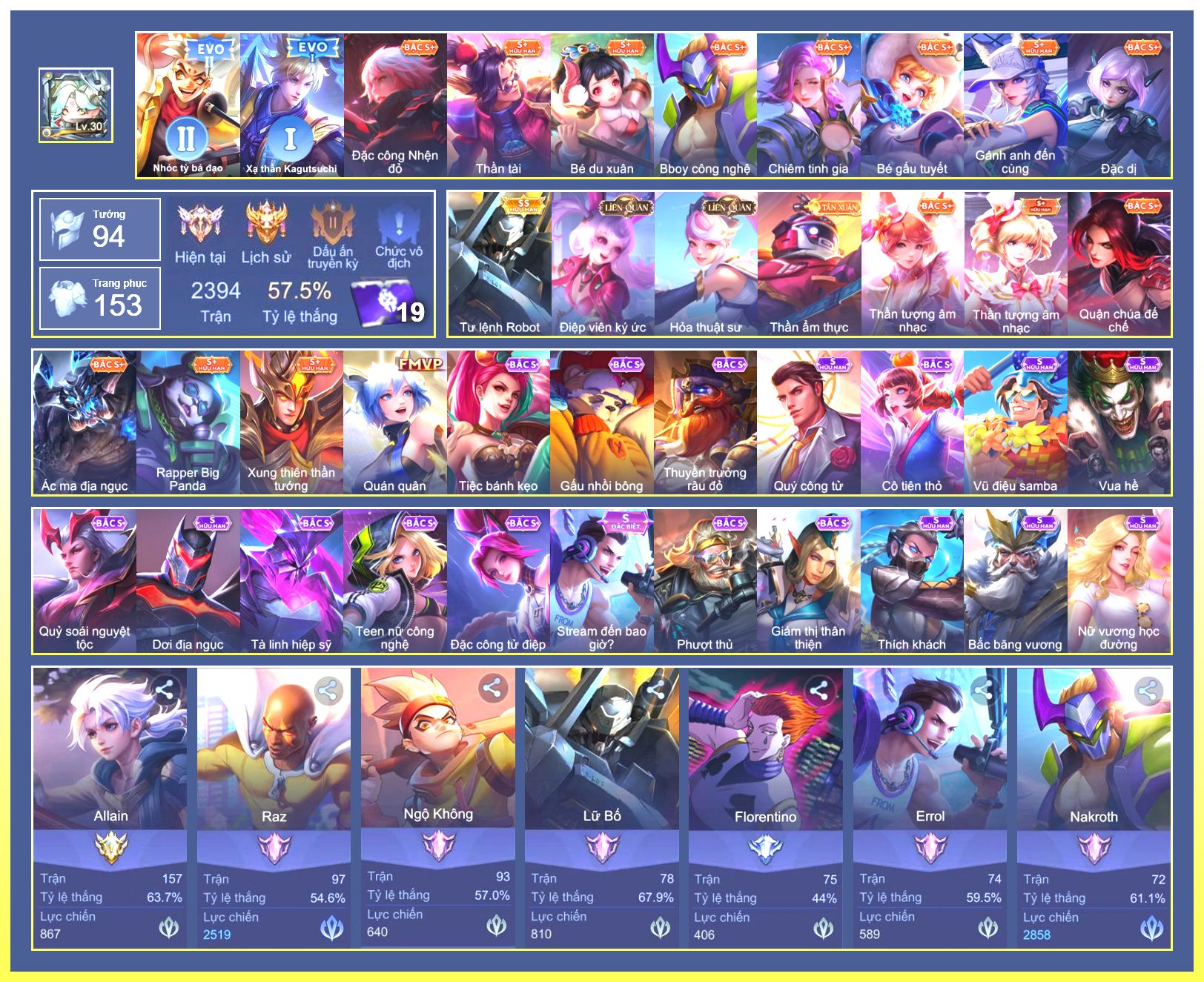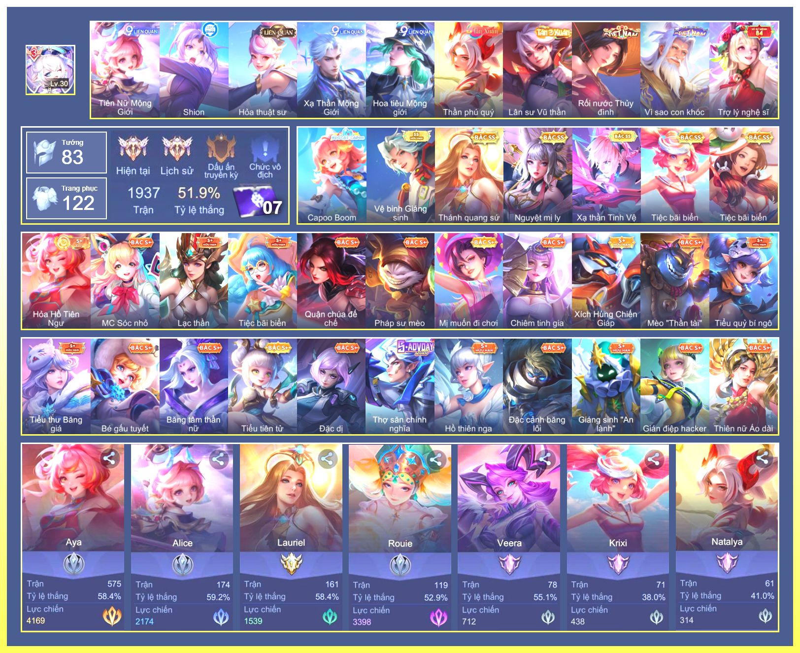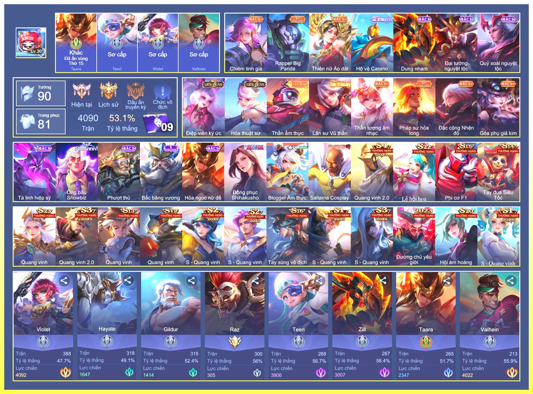 Rất Nhiều Skin Đẹp Vip.Ngọc 90.Dư 6...