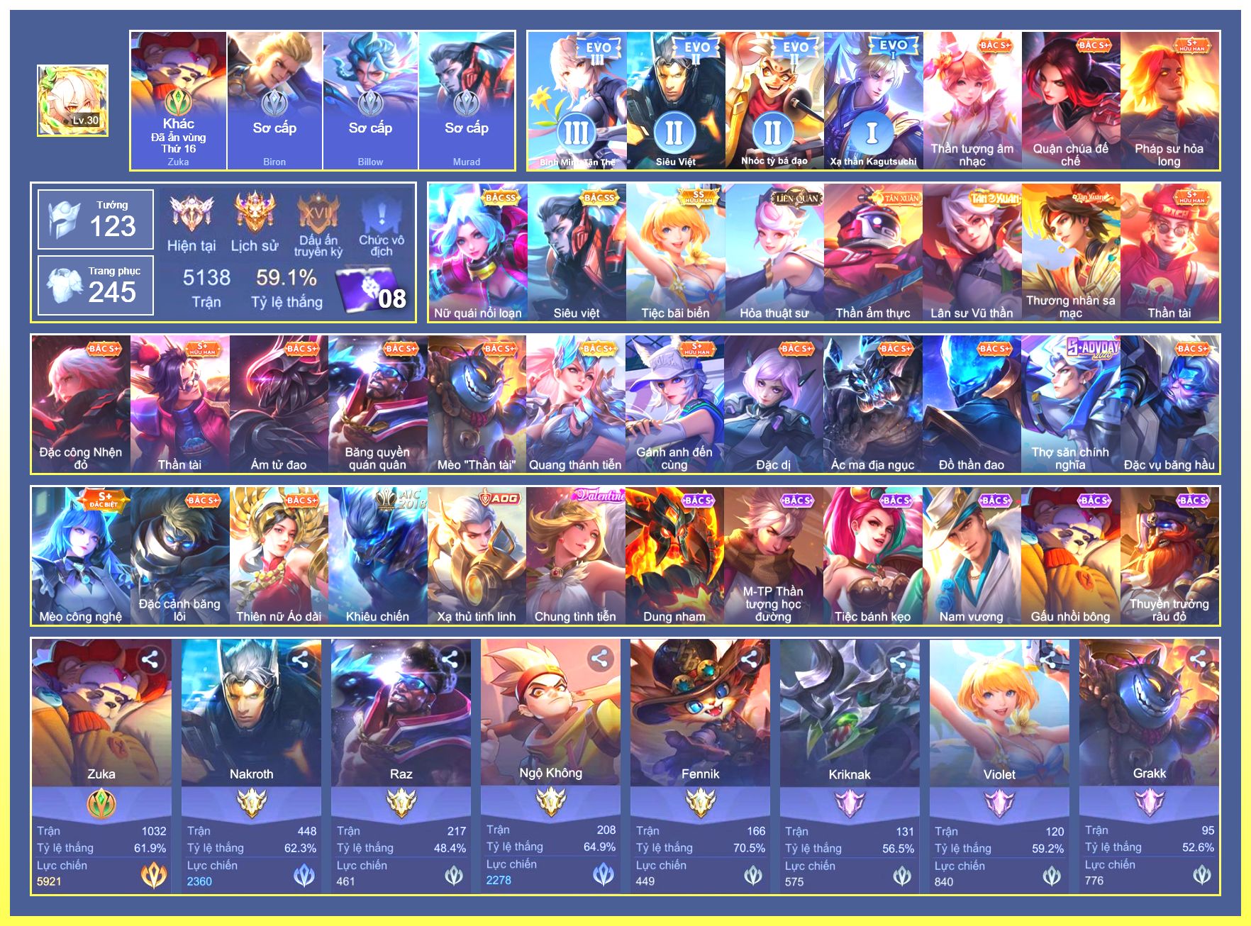 Rất Nhiều Skin Đẹp Vip.Ngọc 90.Điêu...
