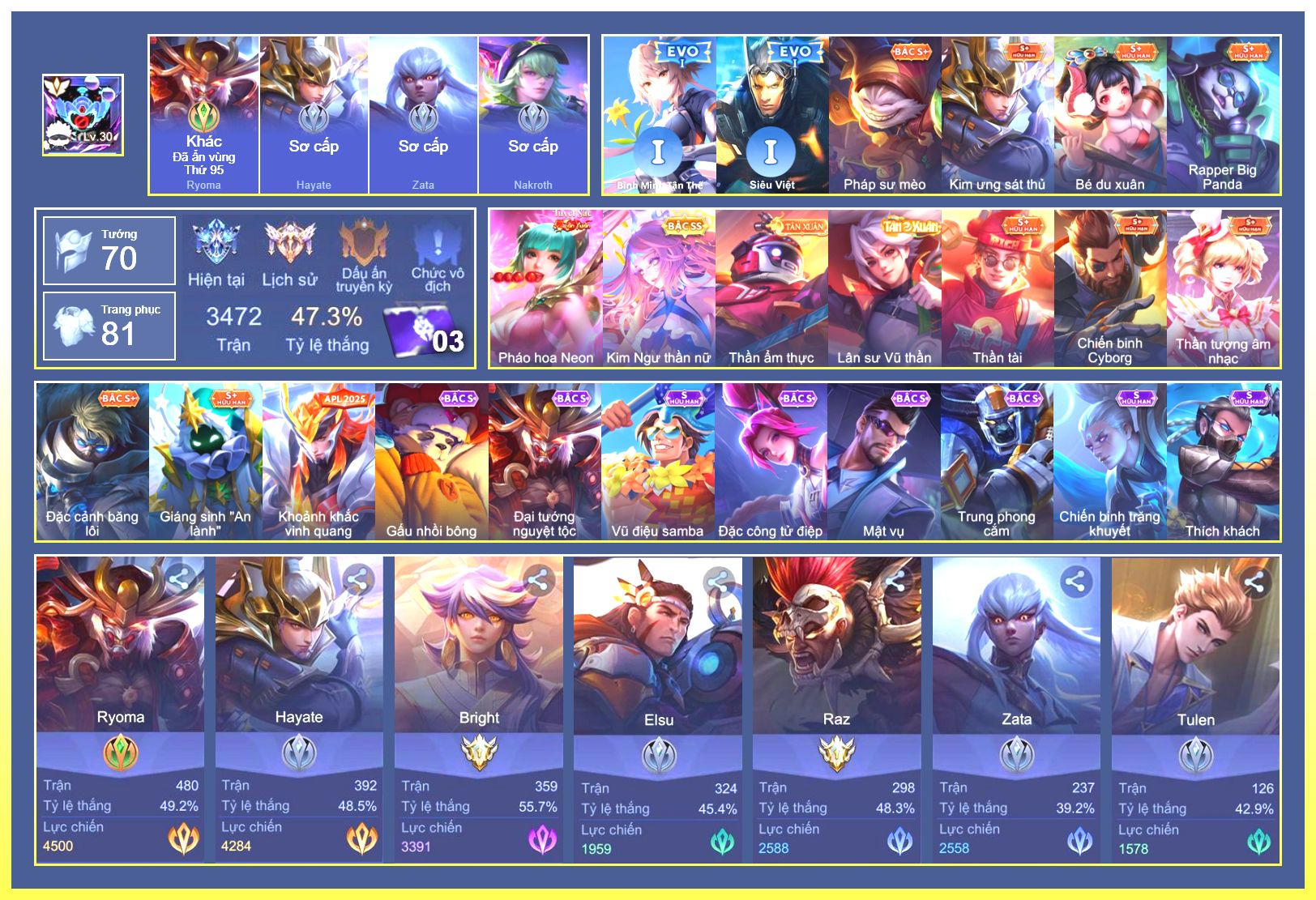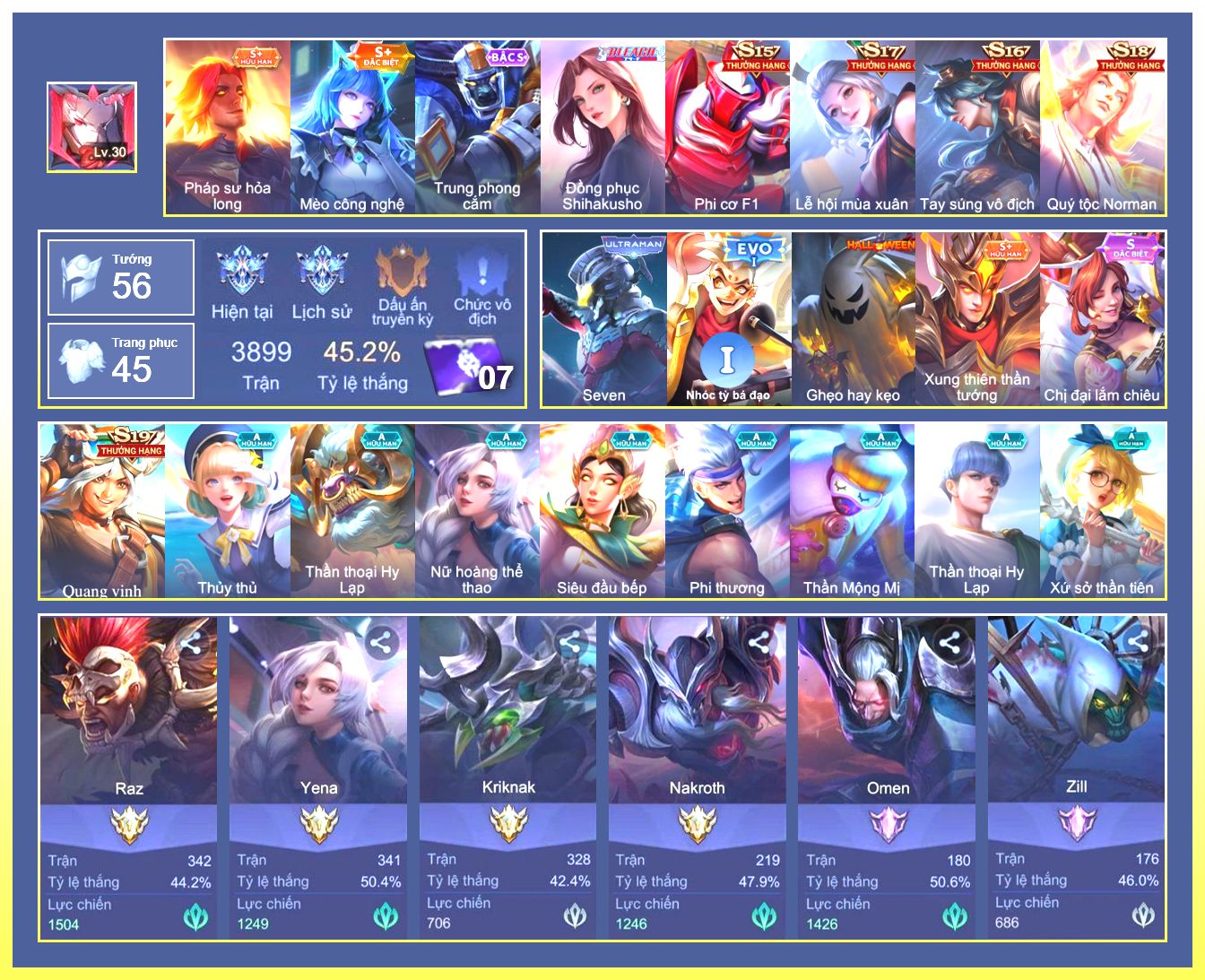 Rất Nhiều Skin Đẹp Vip.Ngọc 90.Dư 3...