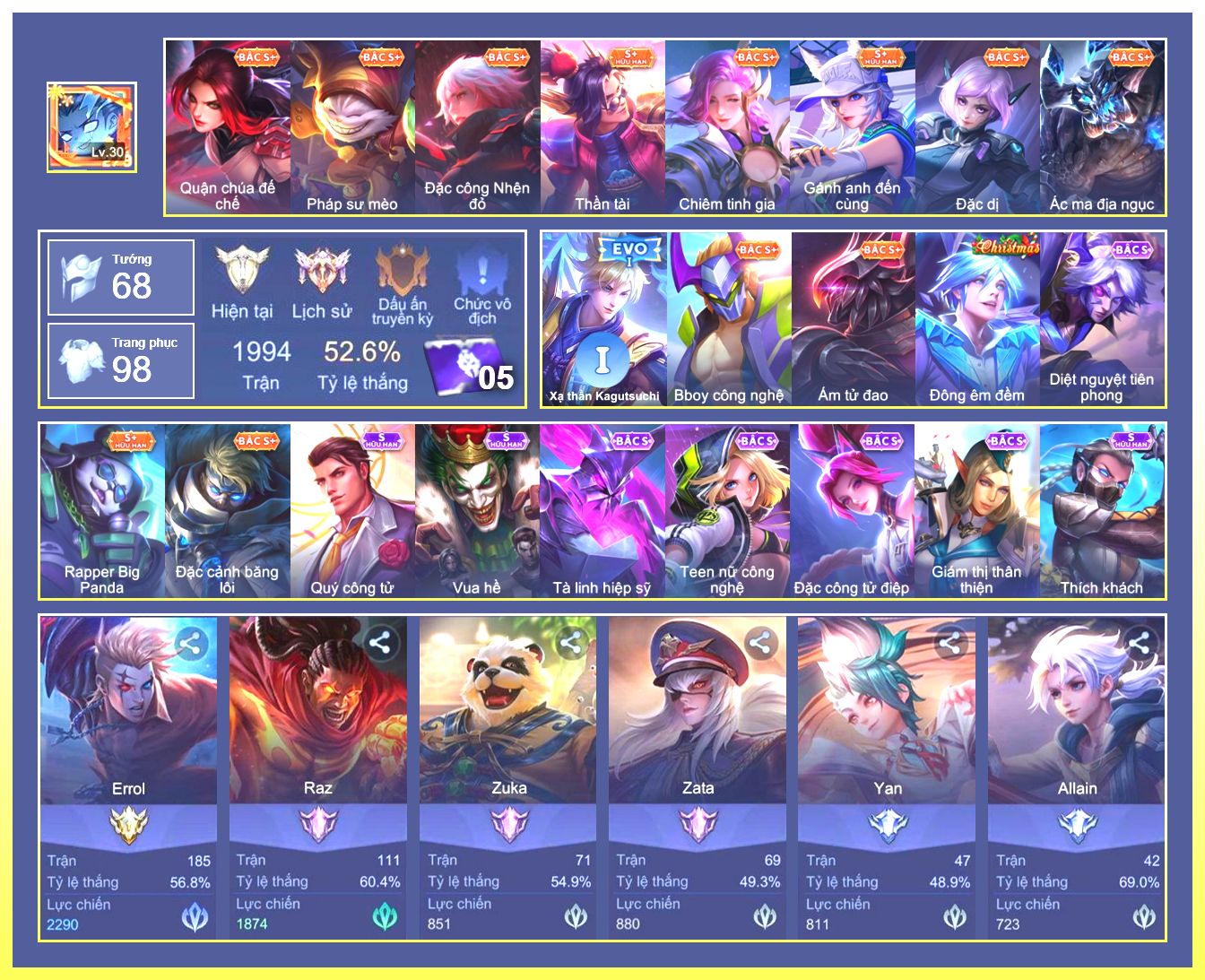 Rất Nhiều Skin Đẹp Vip.Ngọc 90.Dư 4...