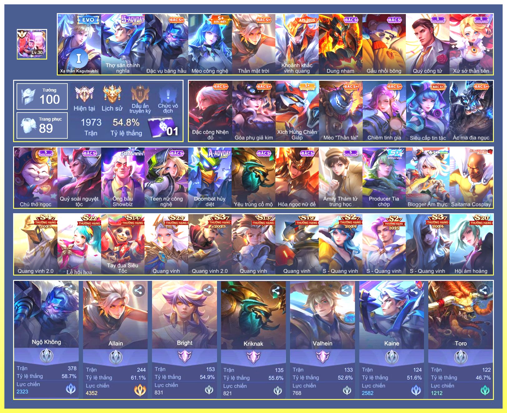 Rất Nhiều Skin Đẹp Vip.Ngọc 90.Dư 7...
