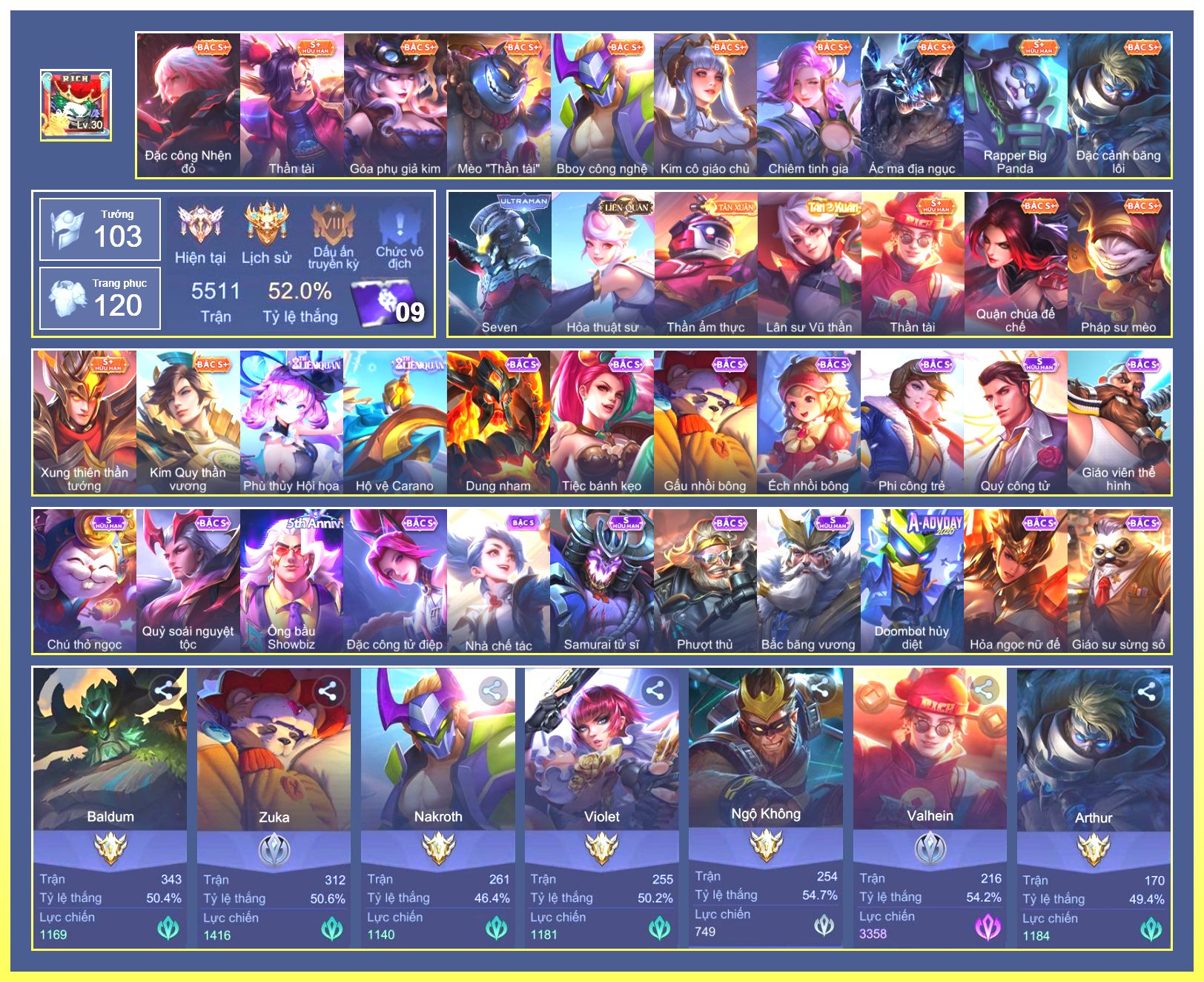 Rất Nhiều Skin Đẹp Vip.Ngọc 90.Dư 9...