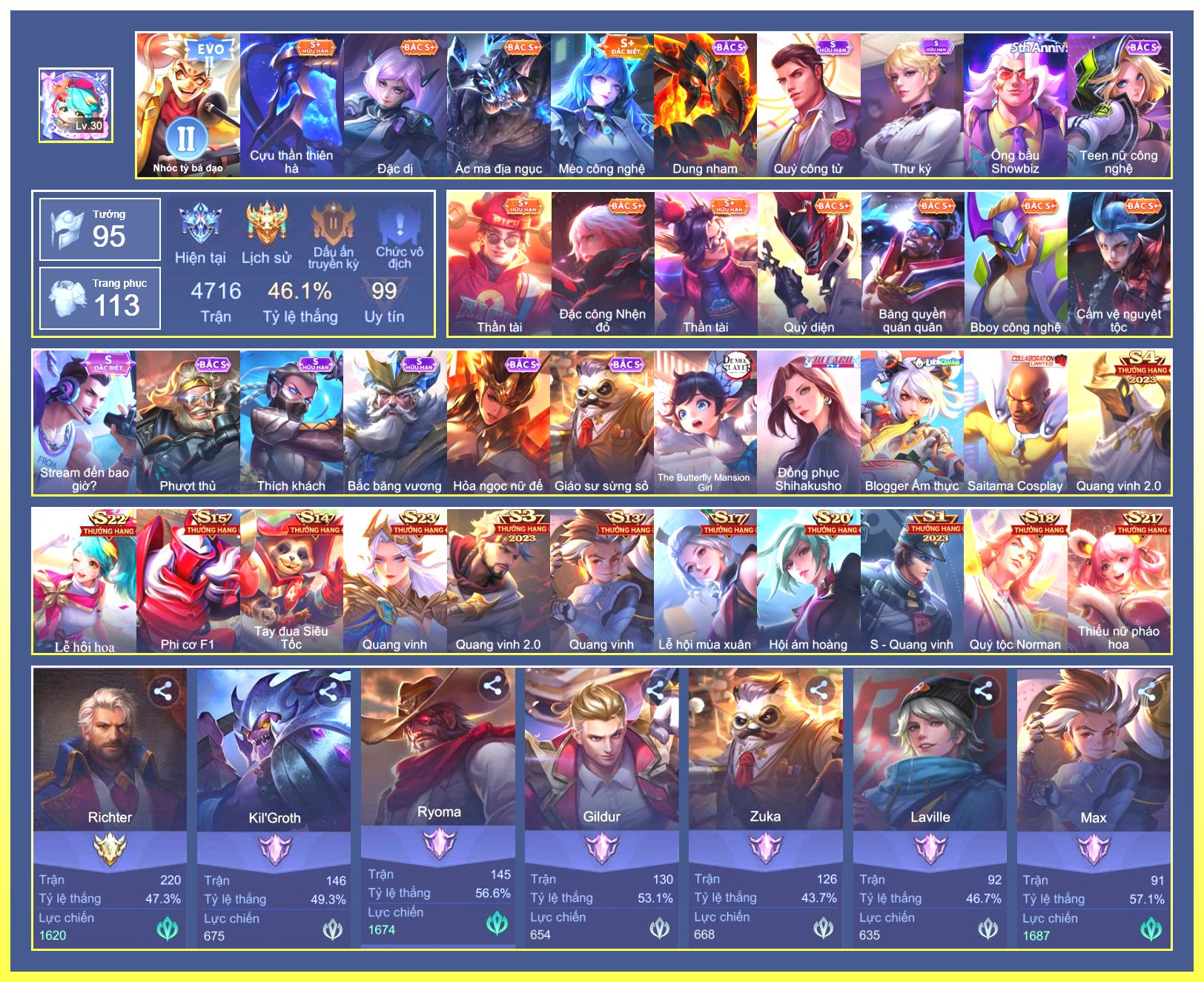 Rất Nhiều Skin Đẹp Vip.Ngọc 90.Dư 4...
