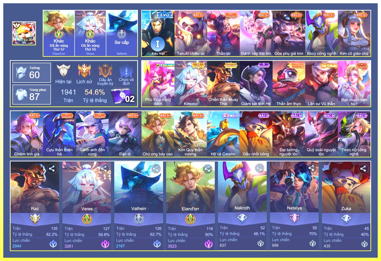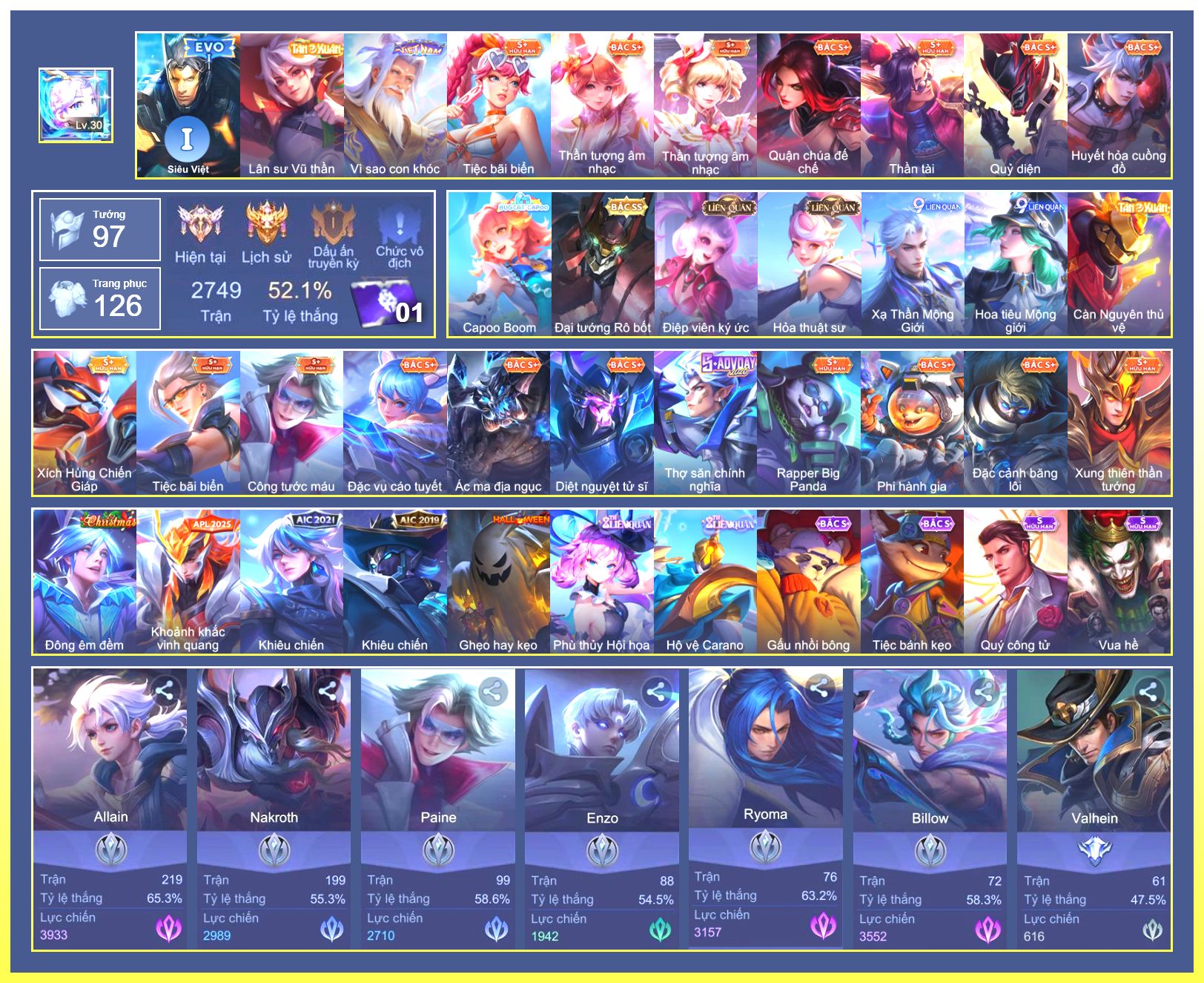 Rất Nhiều Skin Đẹp Vip.Ngọc 90.Dư 1...