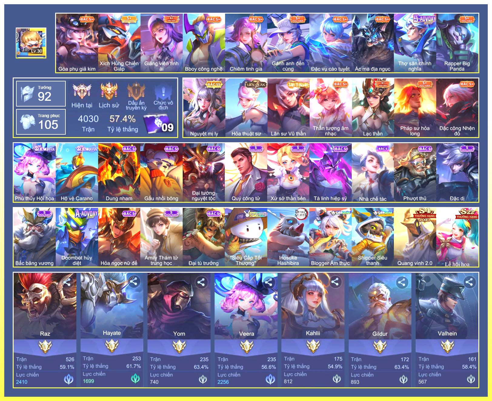 Rất Nhiều Skin Đẹp Vip.Ngọc 90.Dư 3...