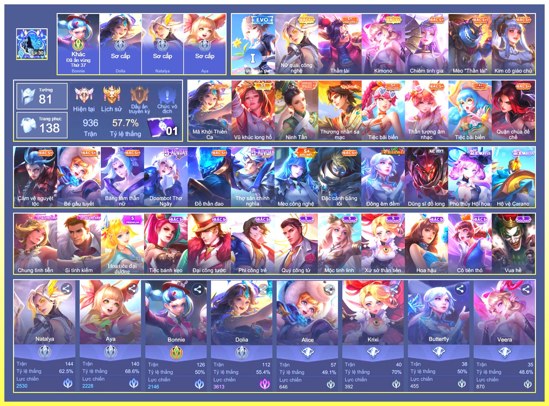 Rất Nhiều Skin Đẹp Vip.Ngọc 90.Dư 1...