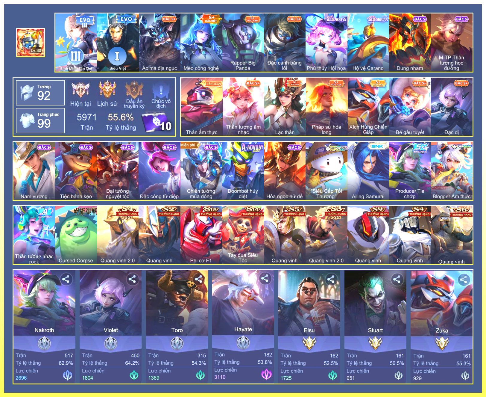 Rất Nhiều Skin Đẹp Vip.Ngọc 90.Dư 7...