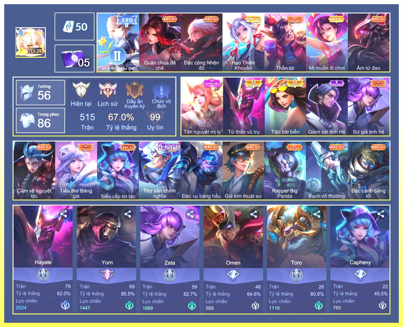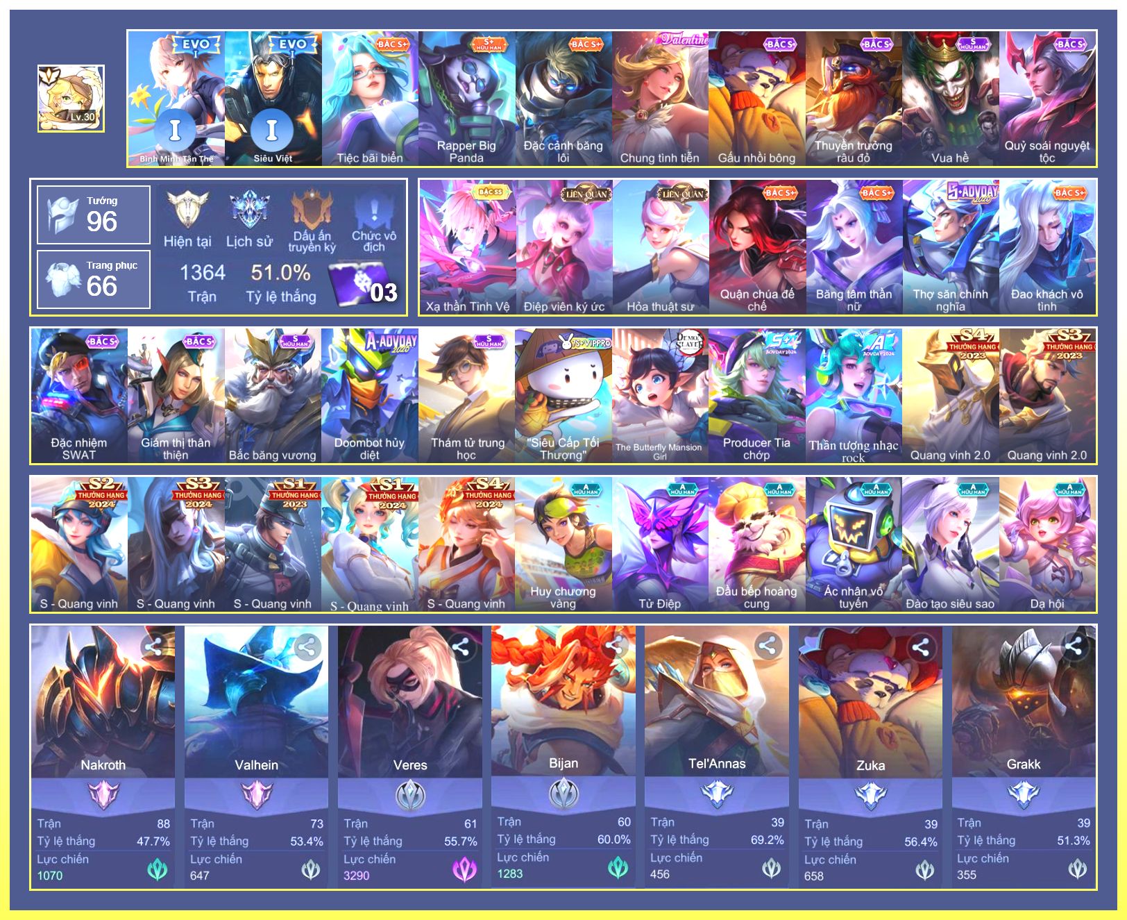 Rất Nhiều Skin Đẹp Vip.Ngọc 90.Lavi...