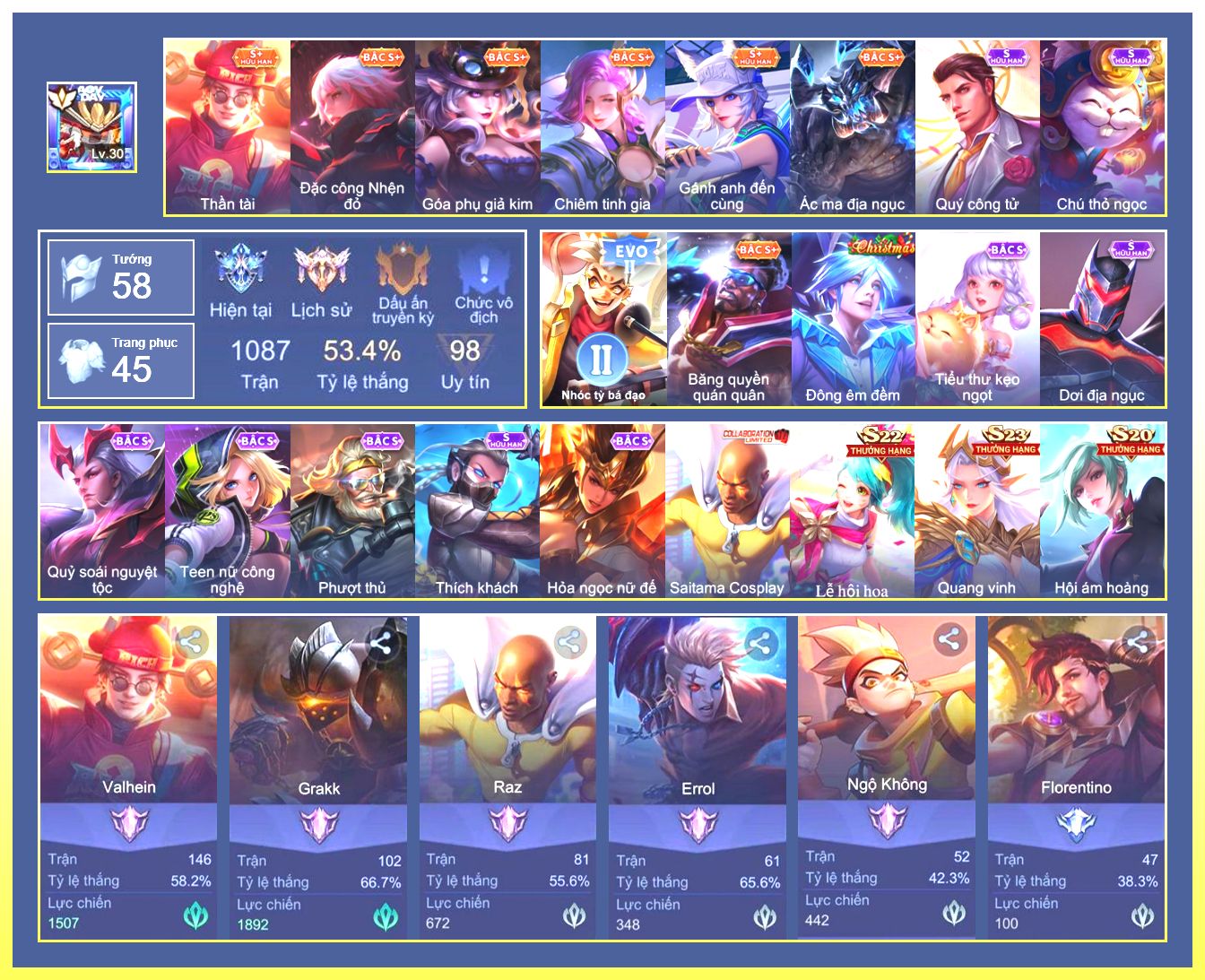 Rất Nhiều Skin Đẹp Vip.Ngọc 90.Dư 4...